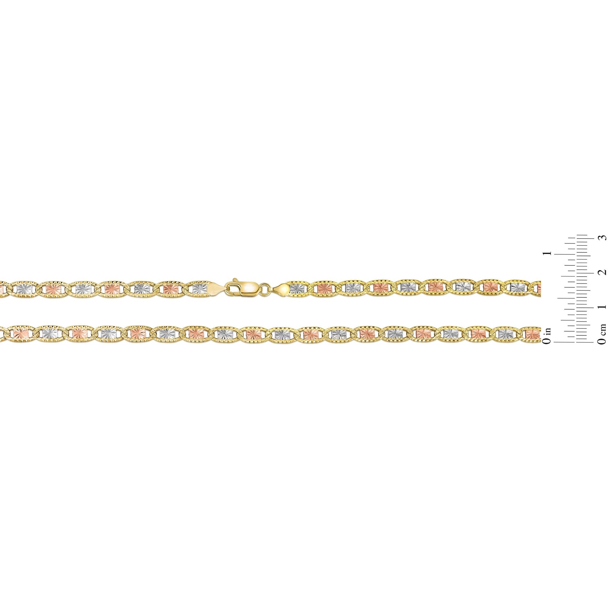 FEATURES— Elevate your style with this stunning classic tri-color gold Valentino bracelet or anklet. Crafted with timeless elegance, its radiant tri-color gold adds warmth and luxury to any outfit. The Valentino design strikes a perfect balance between classic charm and modern appeal, making it a versatile staple in your jewelry collection.