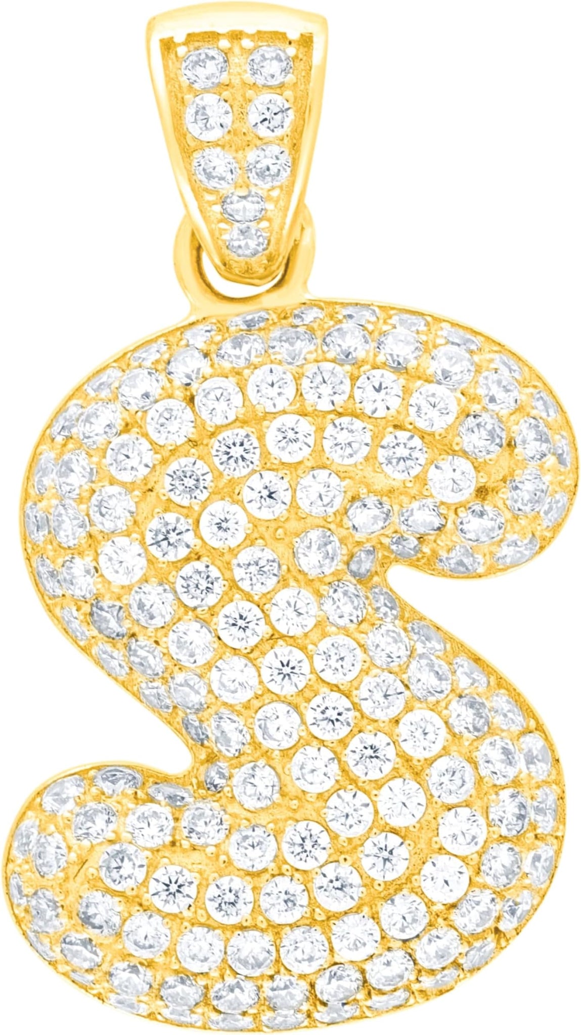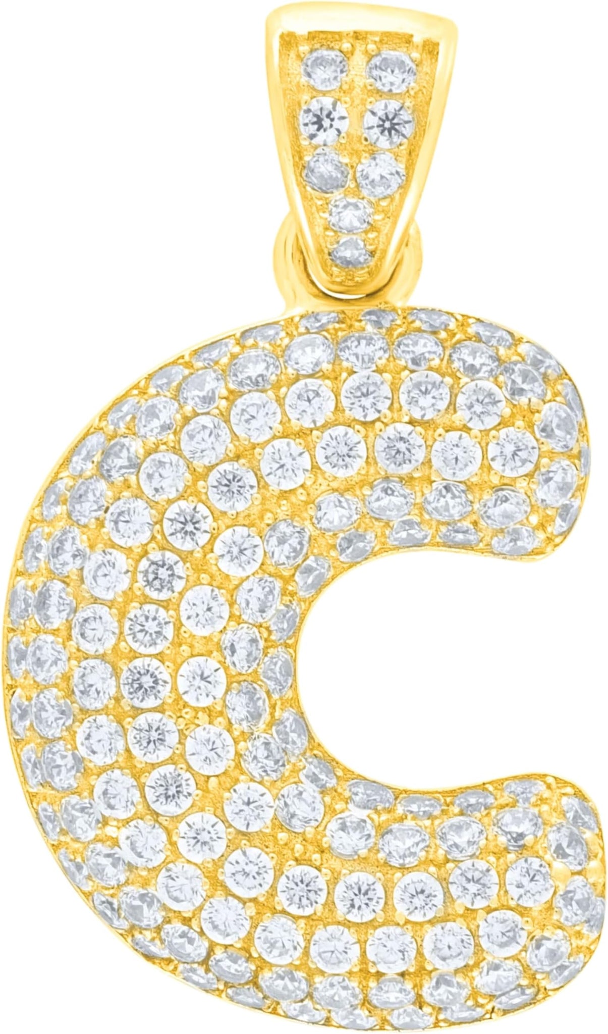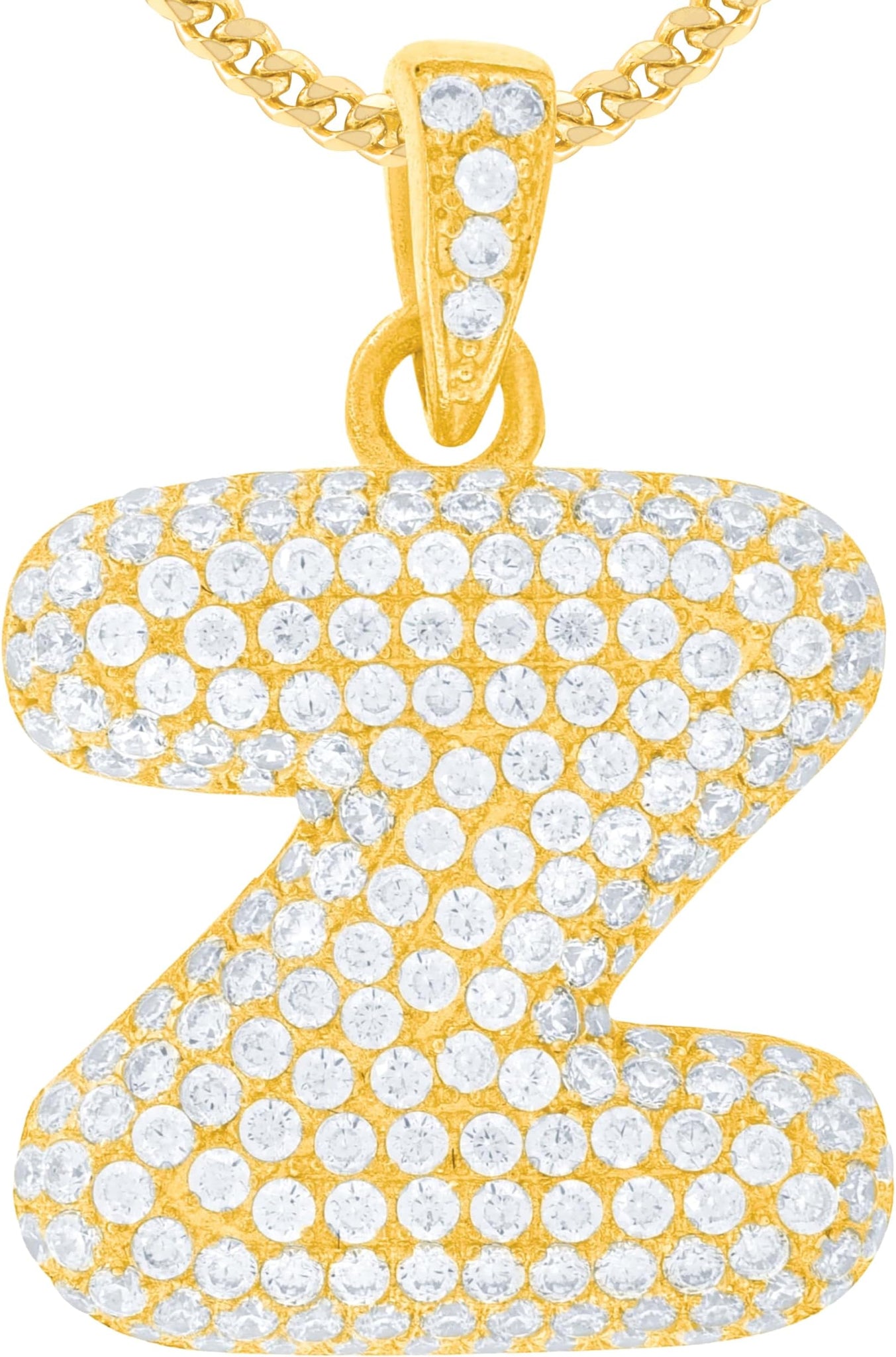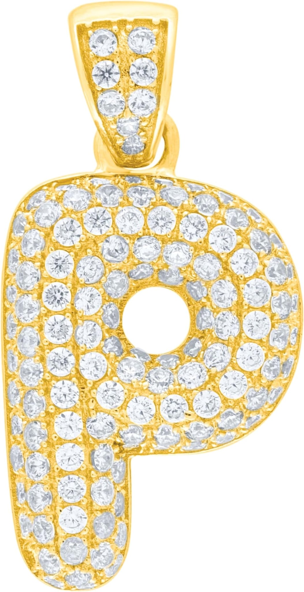 - Style— Pave CZ Personalized Bubble Alphabet Letter A - Z Initial Charm Pendant