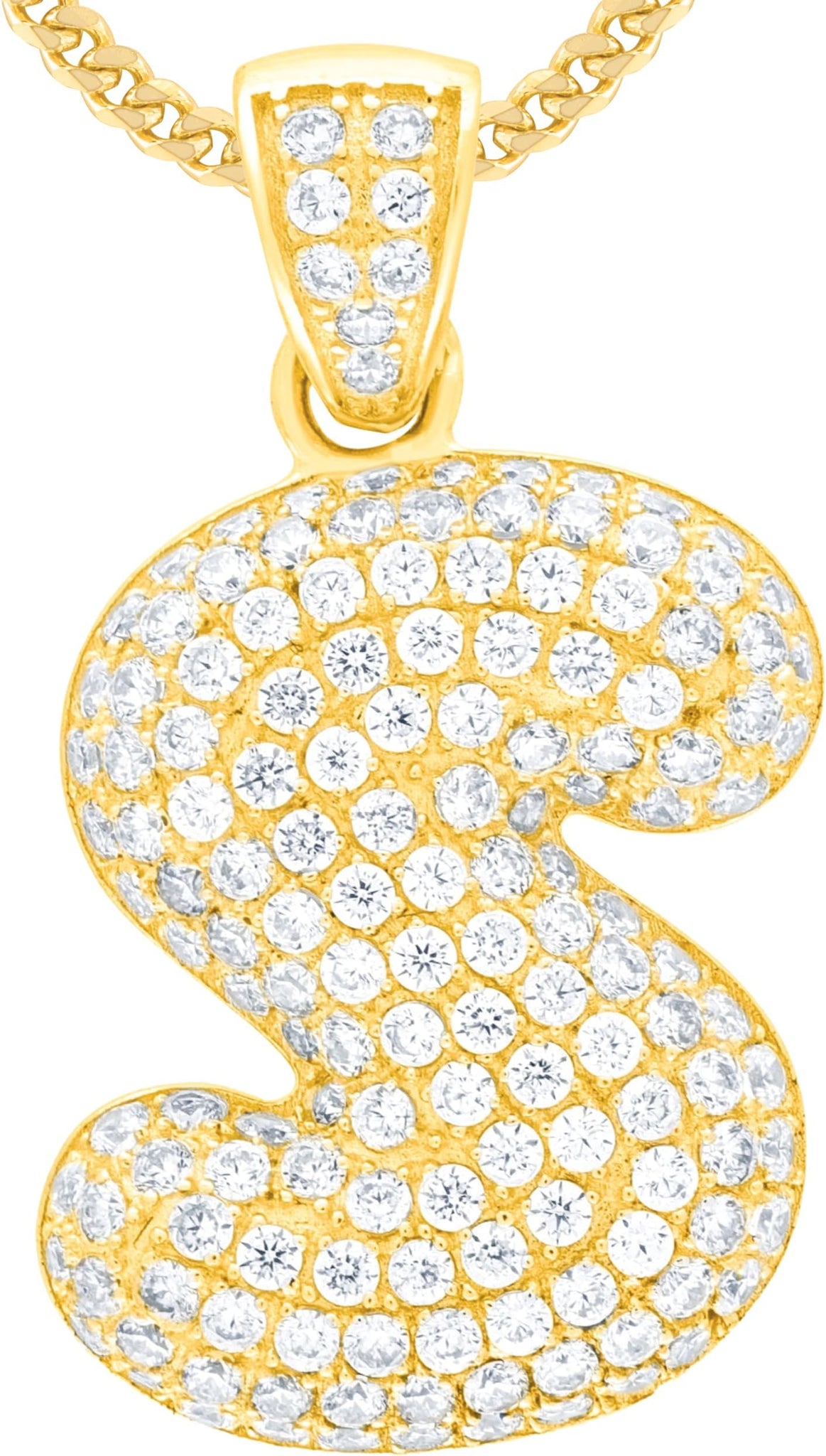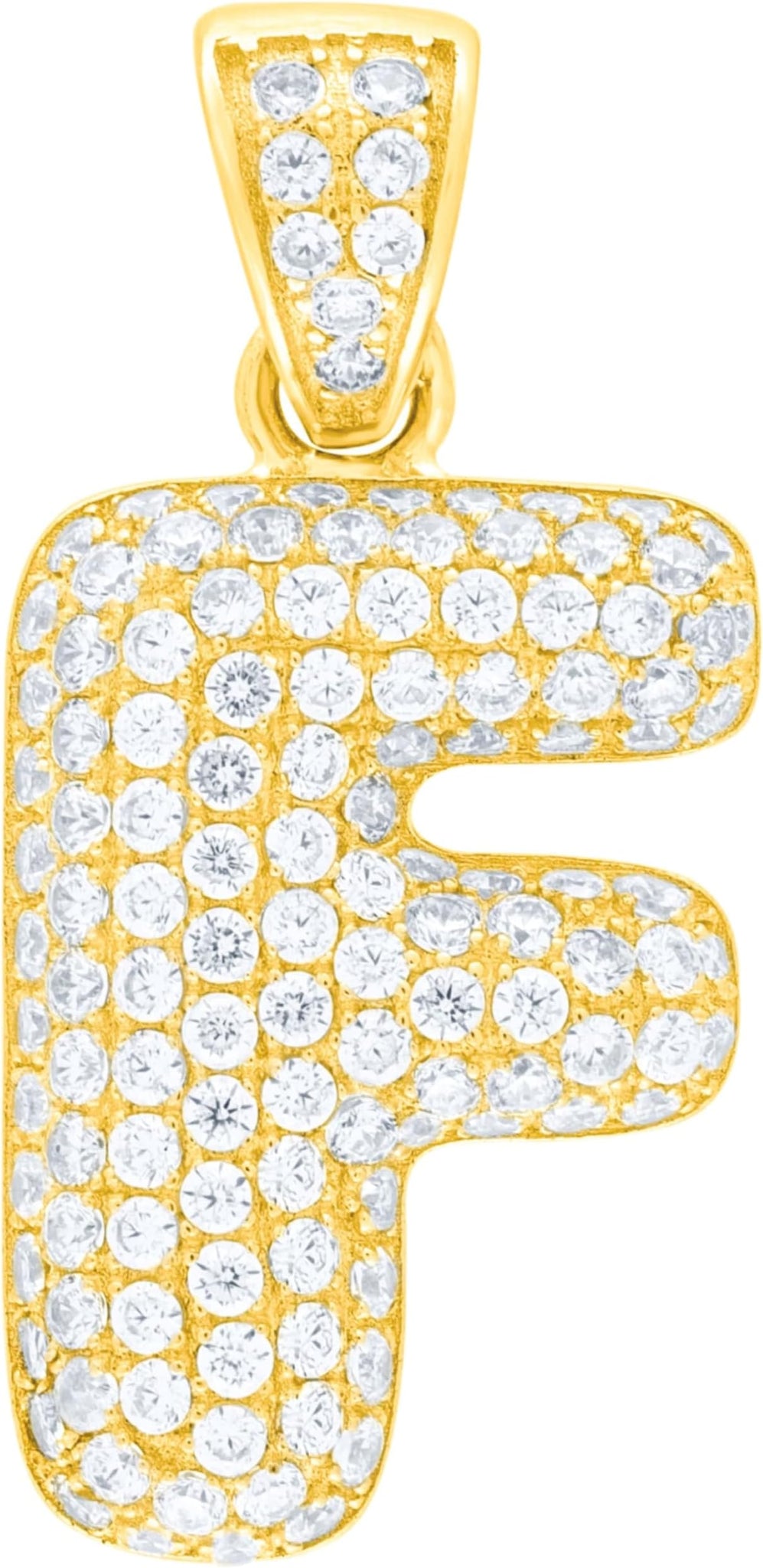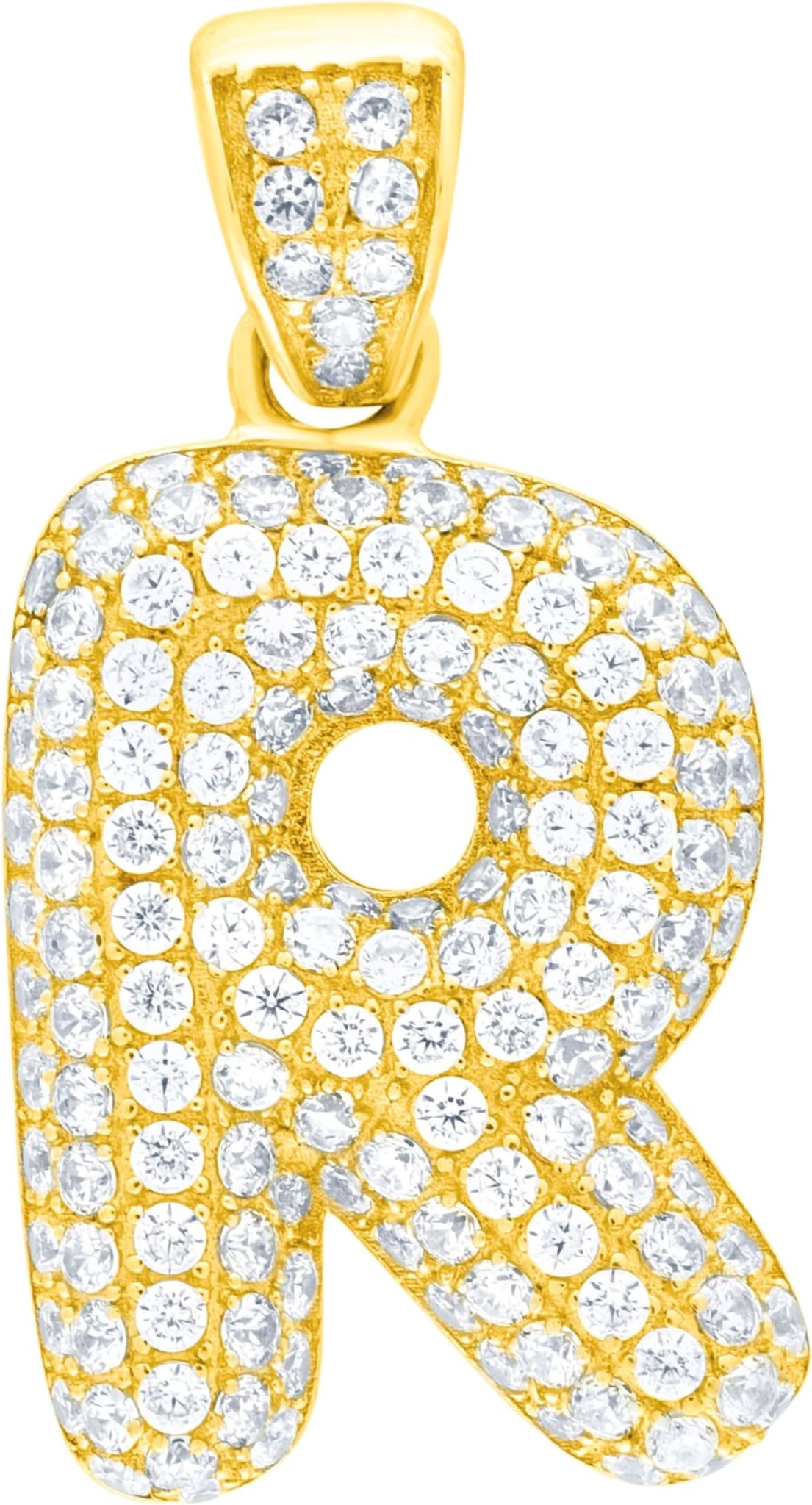 - Style— Pave CZ Personalized Bubble Alphabet Letter A - Z Initial Charm Pendant