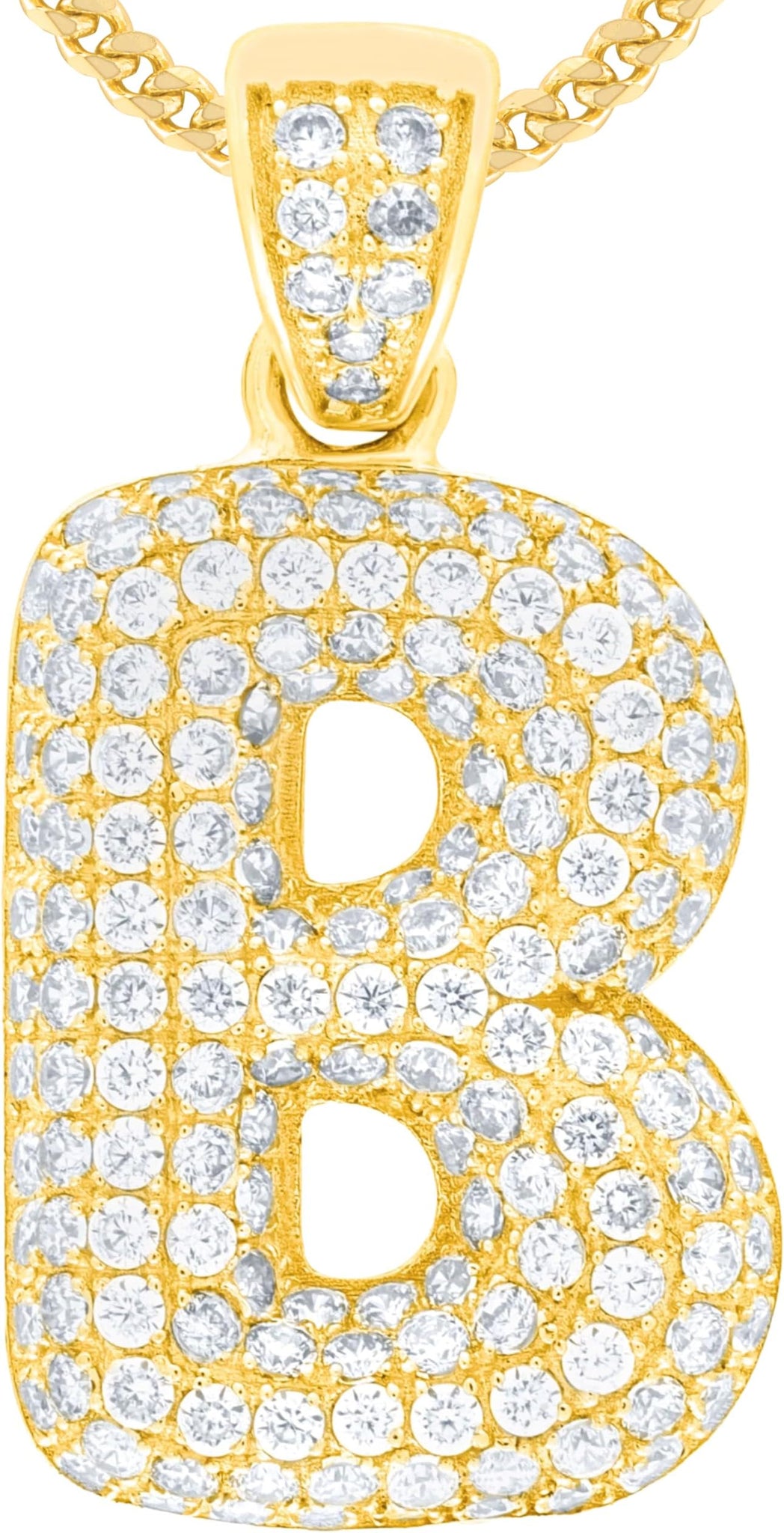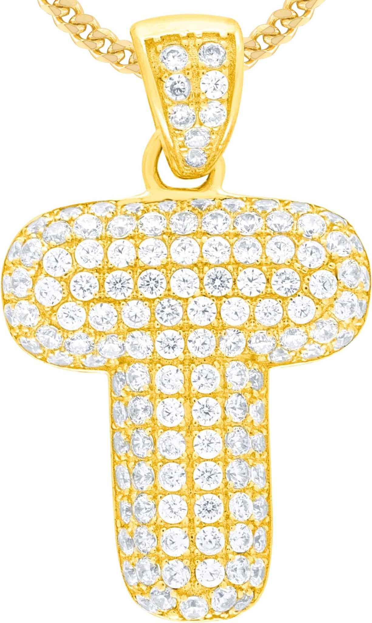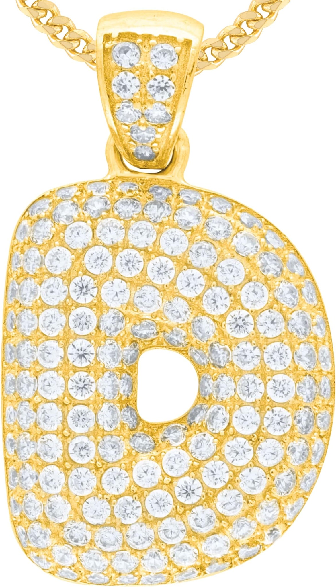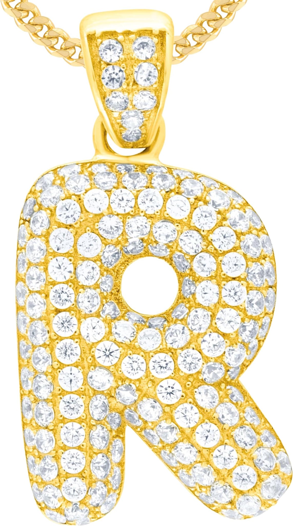 - Style— Pave CZ Personalized Bubble Alphabet Letter A - Z Initial Charm Pendant