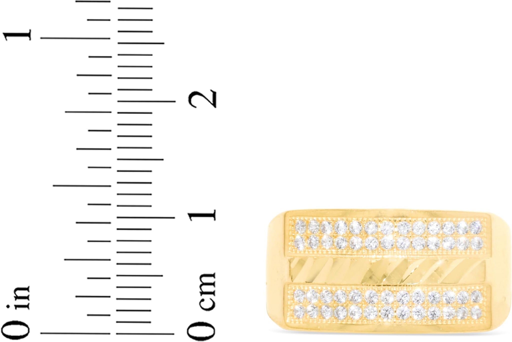 FEATURES— A sleek rectangle face with shimmering pave CZ stones and a striking diamond cut strip gives this signet ring a bold, modern edge.