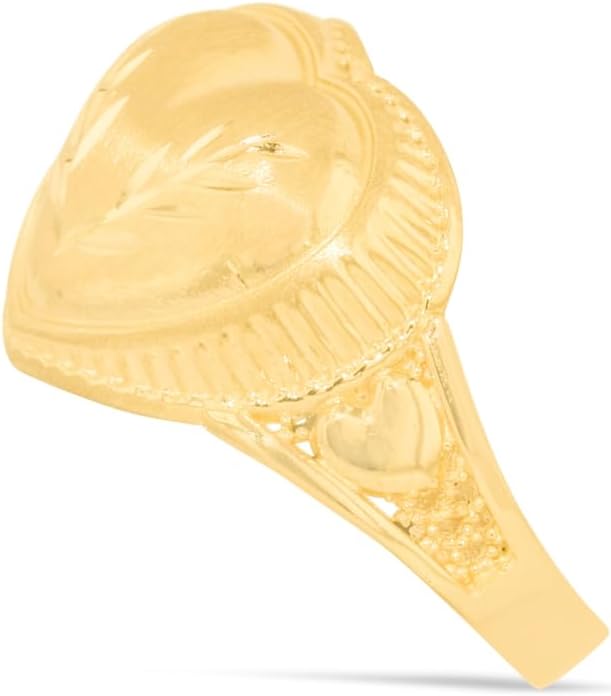 GENUINE 10K GOLD— Crafted from real 10k yellow gold, this ring exudes warmth and charm with its domed heart silhouette. Its enduring shine and intricate detailing make it a piece to cherish.