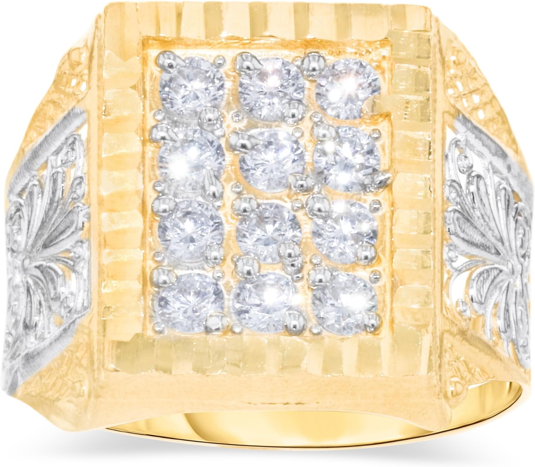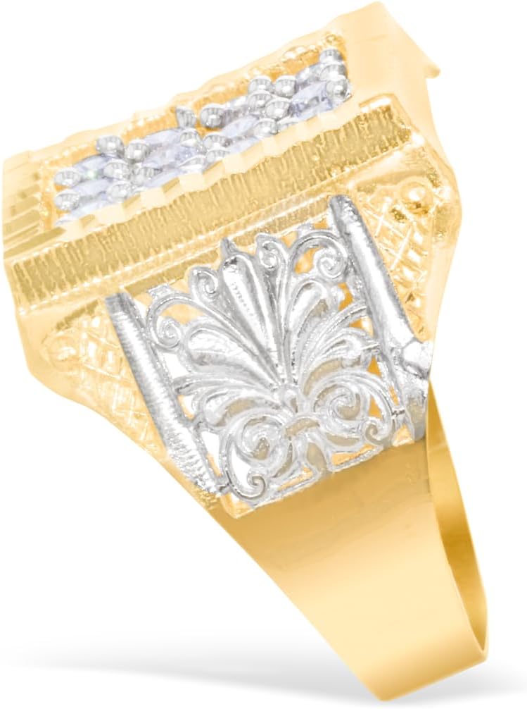 GENUINE 10K GOLD— Crafted from real 10k yellow gold, this ring merges bold style with timeless elegance. The two-tone finish adds depth and a distinctive touch to its refined design.