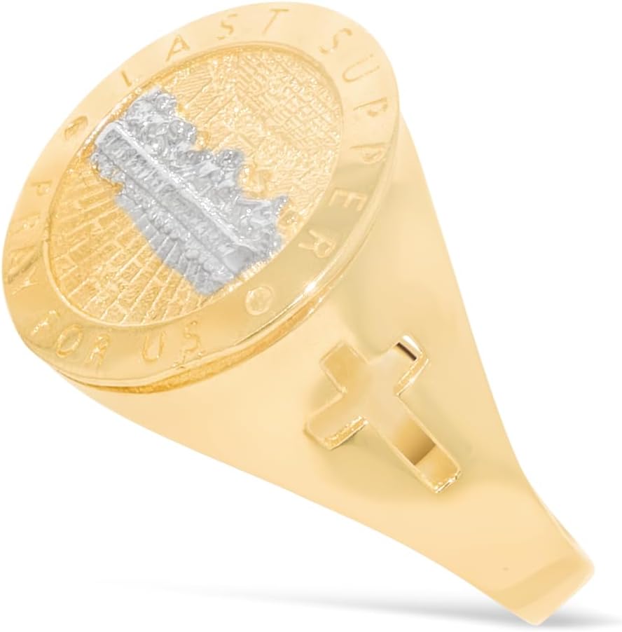 FEATURES— Distinguished medallion design depicting the Last Supper with a cross and the “Pray for Us” inscription, symbolizing faith, unity, and devotion.
