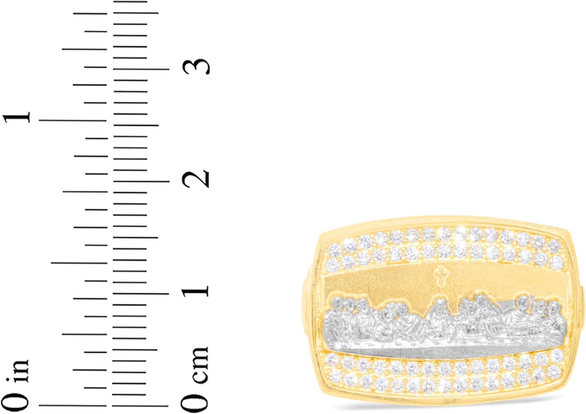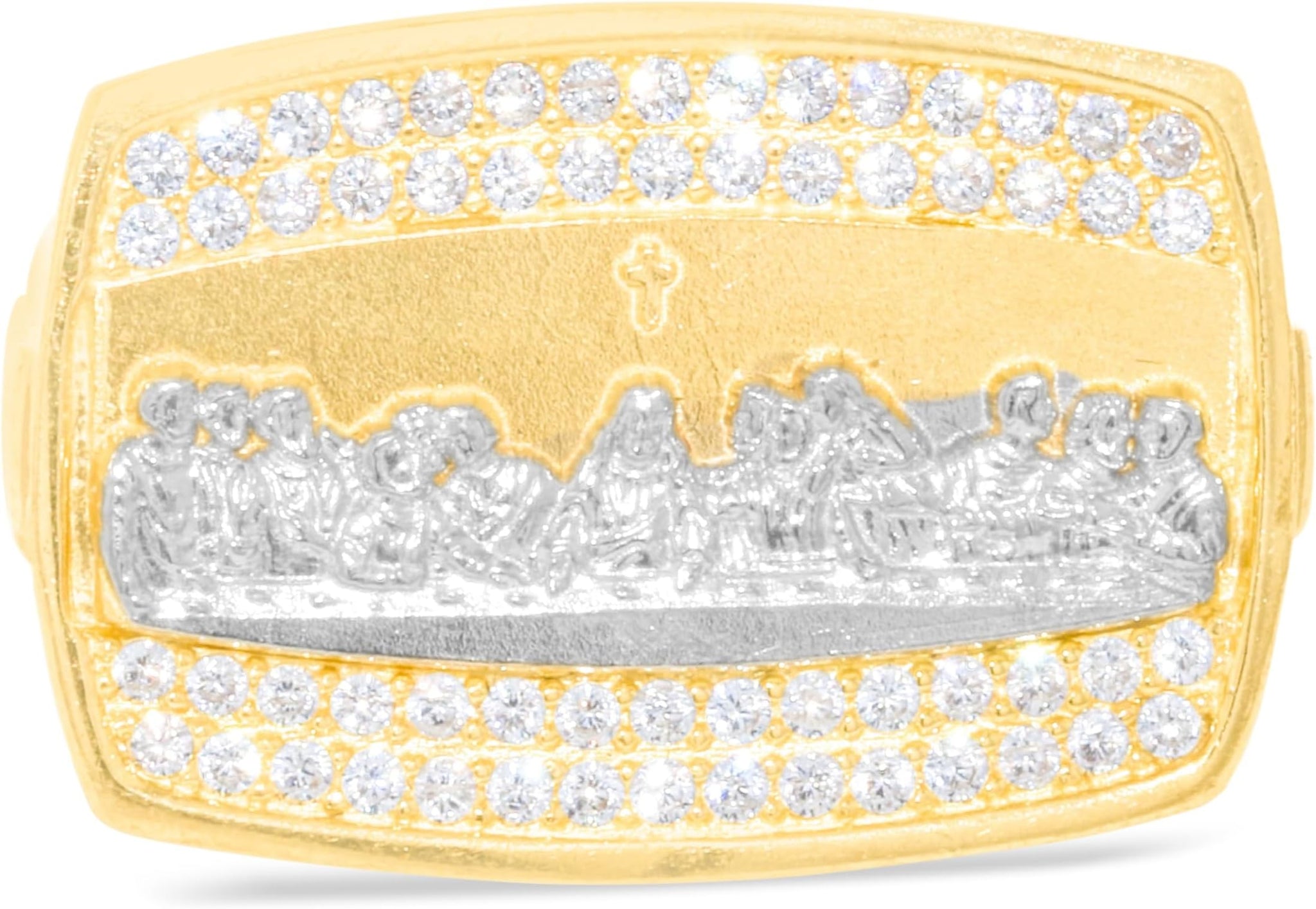 FEATURES— Distinguished rectangular design depicting the Last Supper with a cross and shimmering pave CZ accents, symbolizing faith and unity.