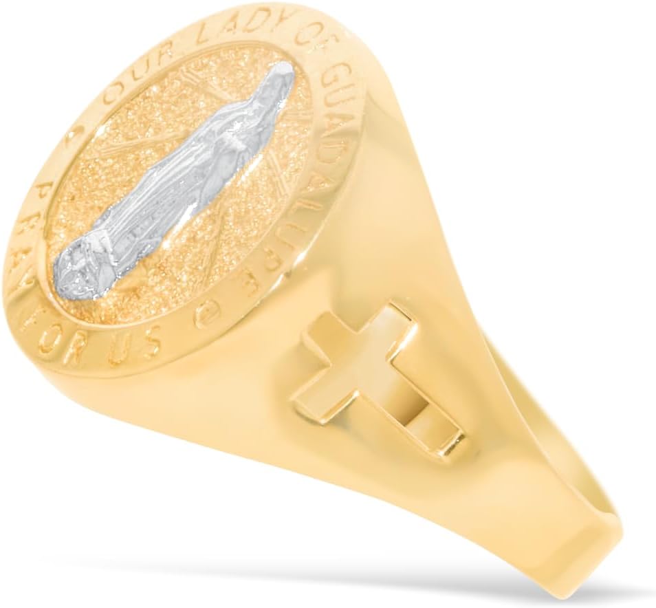 FEATURES— Striking medallion design featuring Our Lady of Guadalupe with a cross and the “Pray for Us” inscription, symbolizing faith, protection, and grace.