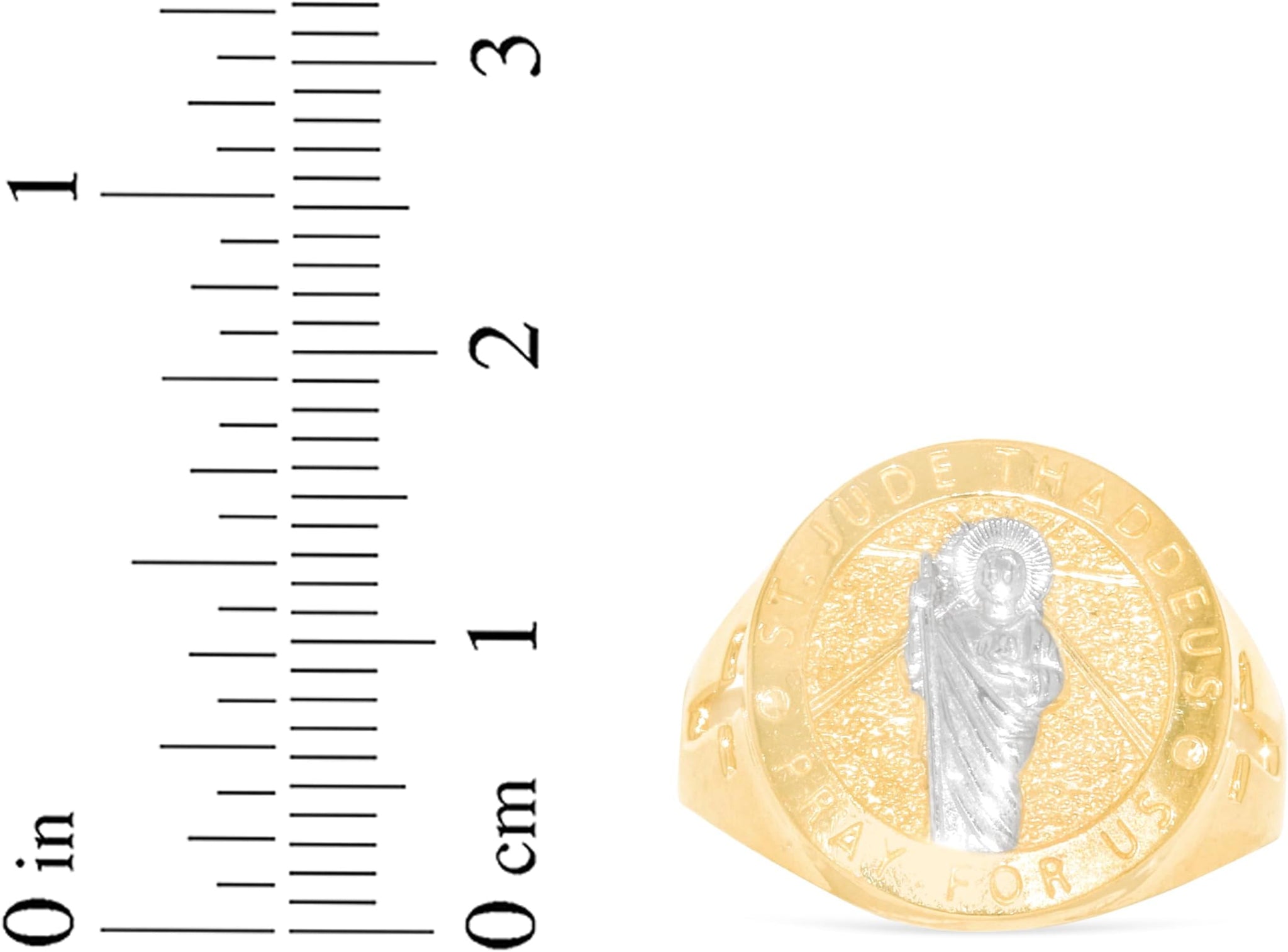 FEATURES— Distinguished medallion design depicting St. Jude Thaddeus with the “Pray for Us” inscription, symbolizing faith and guidance.