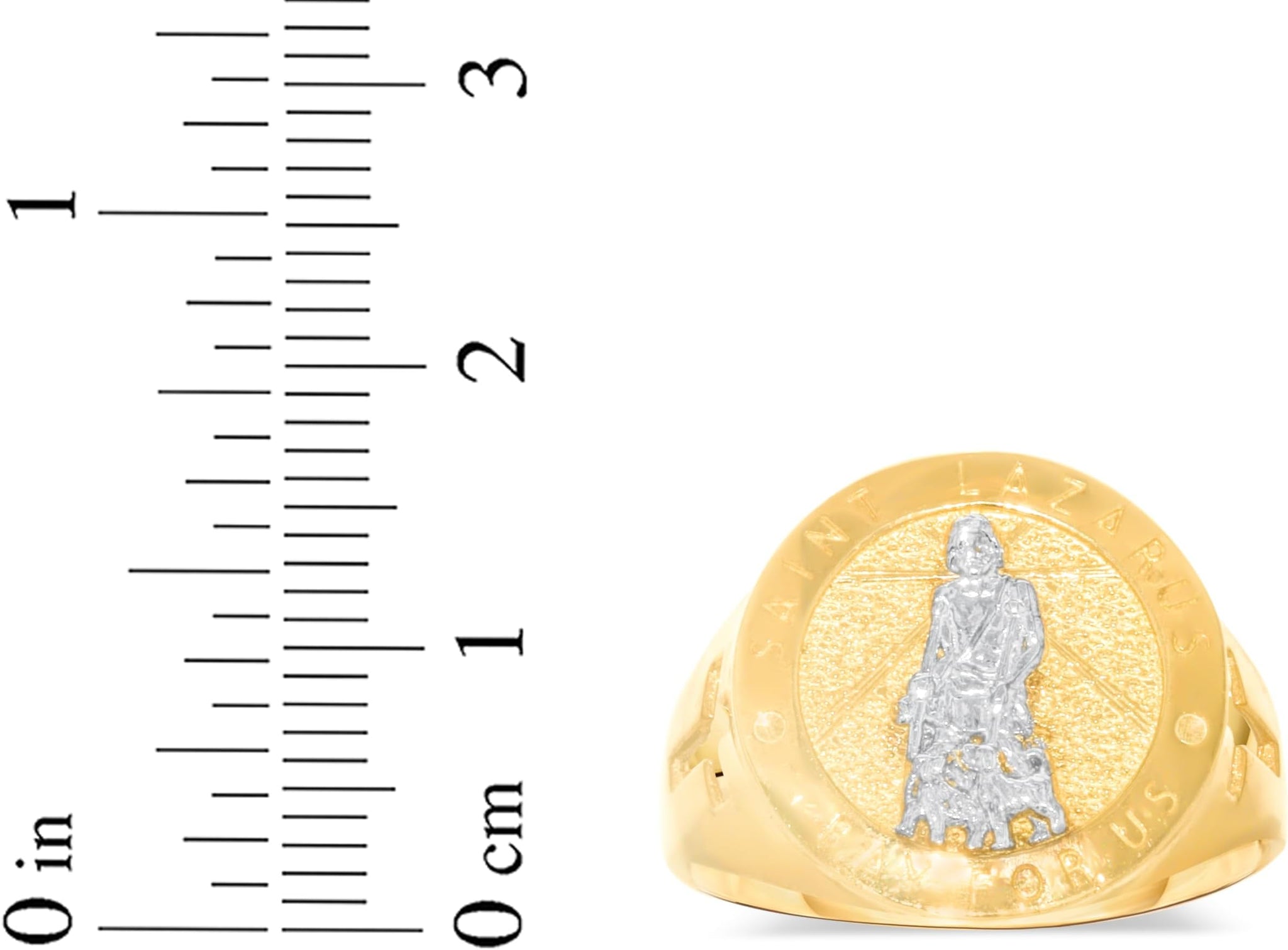 FEATURES— Reverent medallion design featuring St. Lazarus with a cross and the “Pray for Us” inscription, symbolizing healing, faith, and compassion.