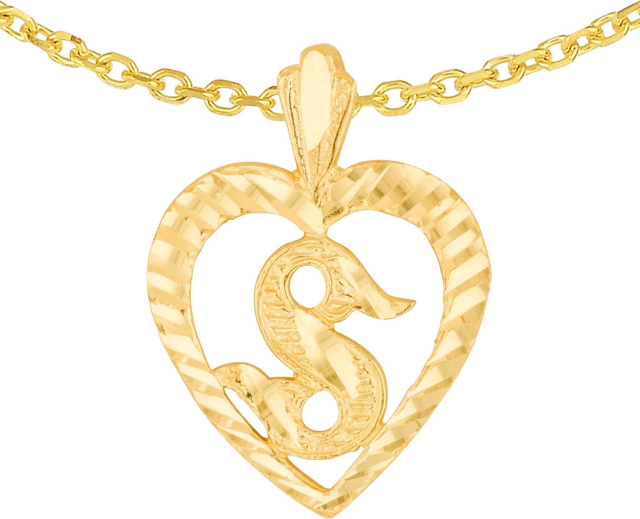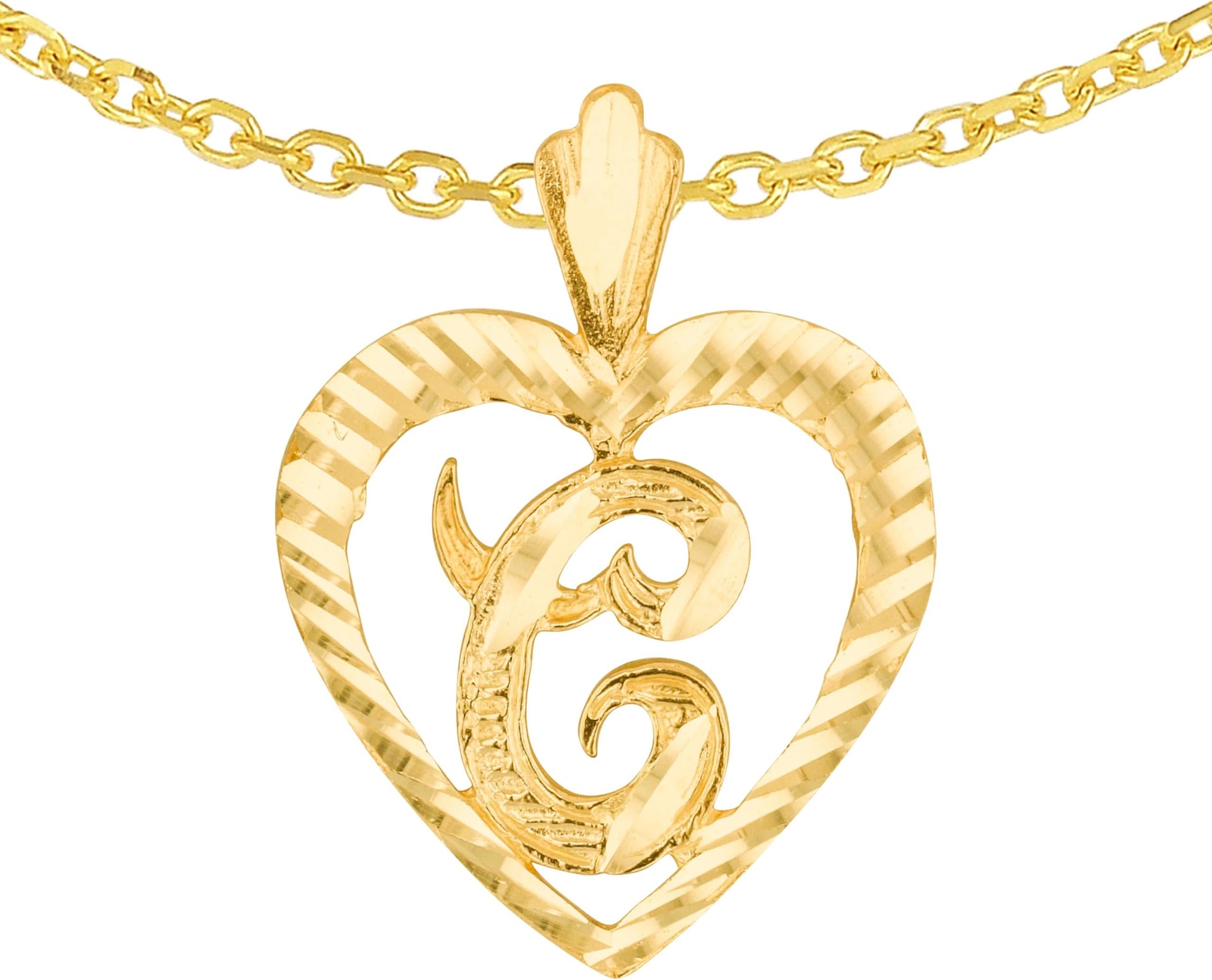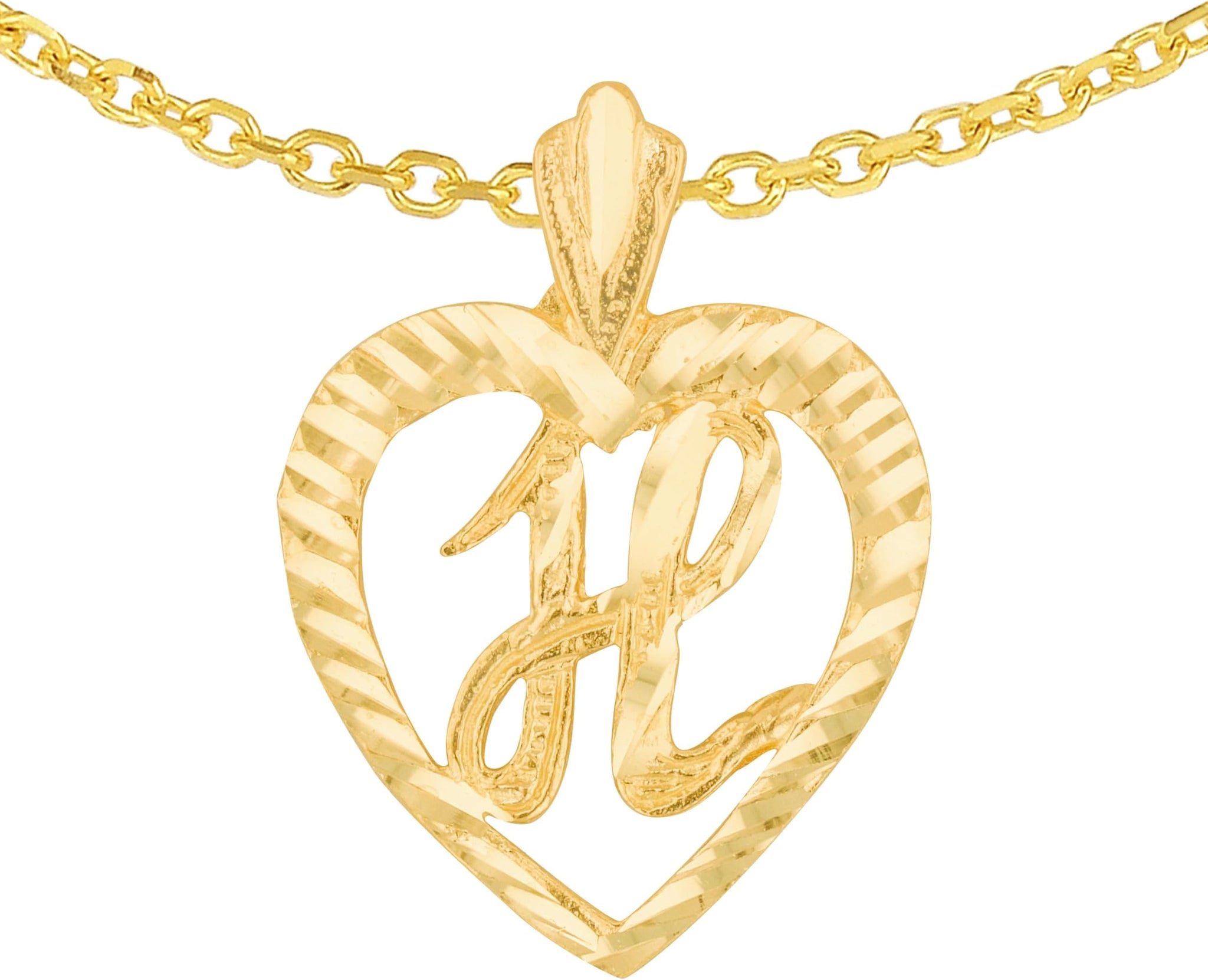 FEATURES— Designed in a heart shape with your chosen initial, this pendant beautifully blends sentiment and sophistication. The polished surface enhances its refined look, creating a shining symbol of love and individuality.