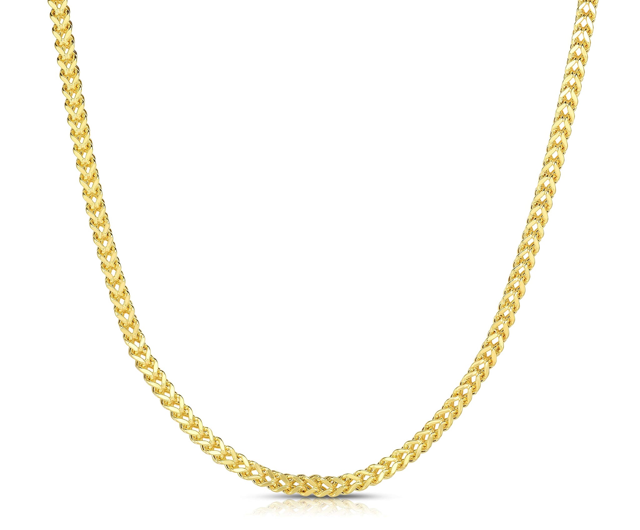 FEATURES— Elevate your elegance with the captivating Lite Franco Chain Necklace in yellow gold. Designed with enduring sophistication, its lustrous finish and delicate design add a hint of luxury to any ensemble. The lightweight Franco structure harmonizes traditional charm with modern flair, making it an indispensable piece in your jewelry collection.