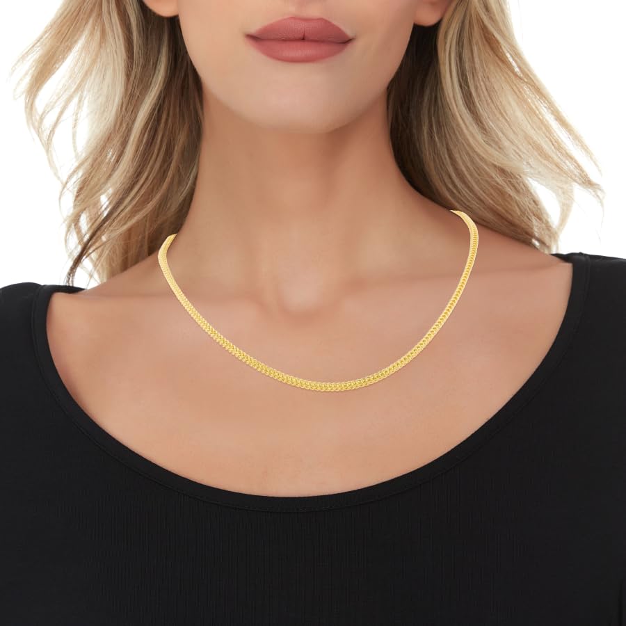 GENUINE 10K GOLD— Immerse yourself in the enduring luxury of authentic 10k gold. Crafted with meticulous attention to detail, this lite Franco chain necklace showcases the intrinsic beauty and lasting value that real 10k gold brings to each piece, ensuring a statement of both style and enduring quality.
