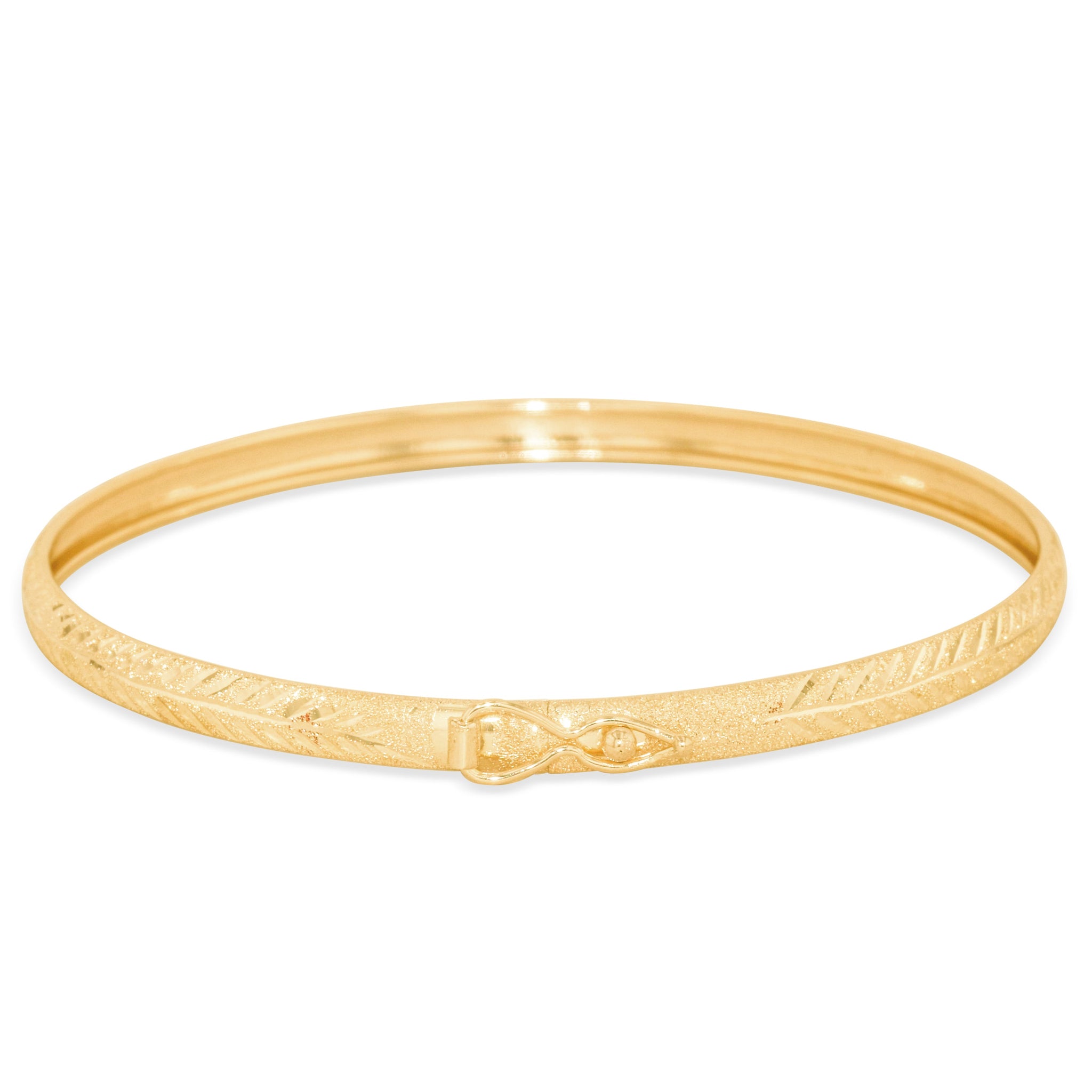 10k Yellow Gold 4mm Lattice Satin Finish Textured Flex Bangle Bracelet