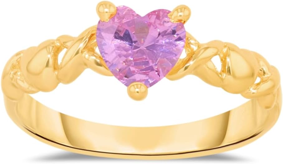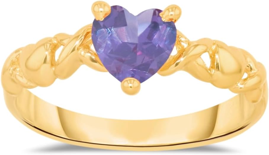 GENUINE 10K GOLD— Made from real 10k yellow gold, this XOXO ring exudes warmth and elegance with a playful, heartfelt twist. Its polished finish highlights the gleaming heart-shaped birthstone at the center.