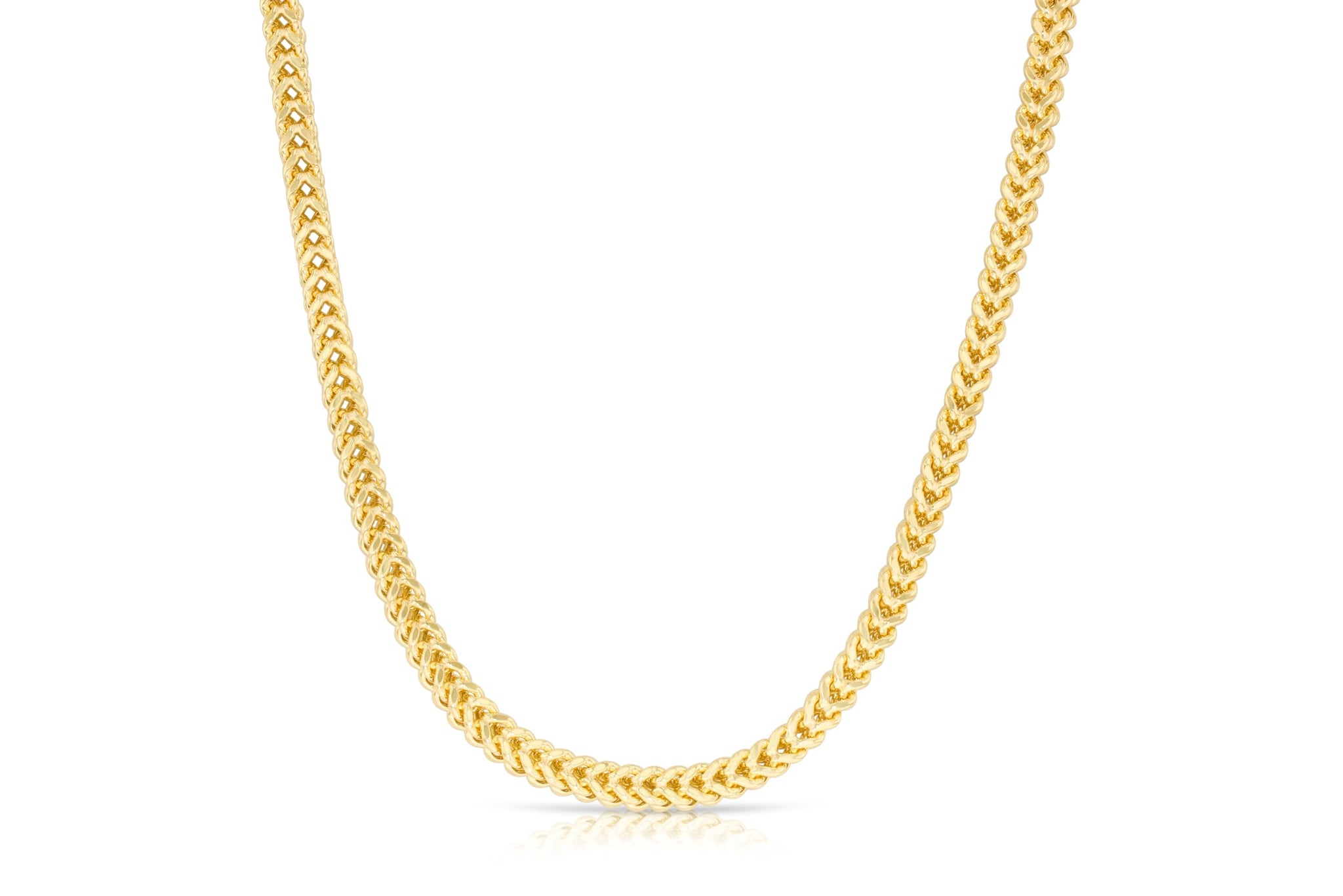 FEATURES— Elevate your elegance with the captivating Lite Franco Chain Necklace in yellow gold. Designed with enduring sophistication, its lustrous finish and delicate design add a hint of luxury to any ensemble. The lightweight Franco structure harmonizes traditional charm with modern flair, making it an indispensable piece in your jewelry collection.