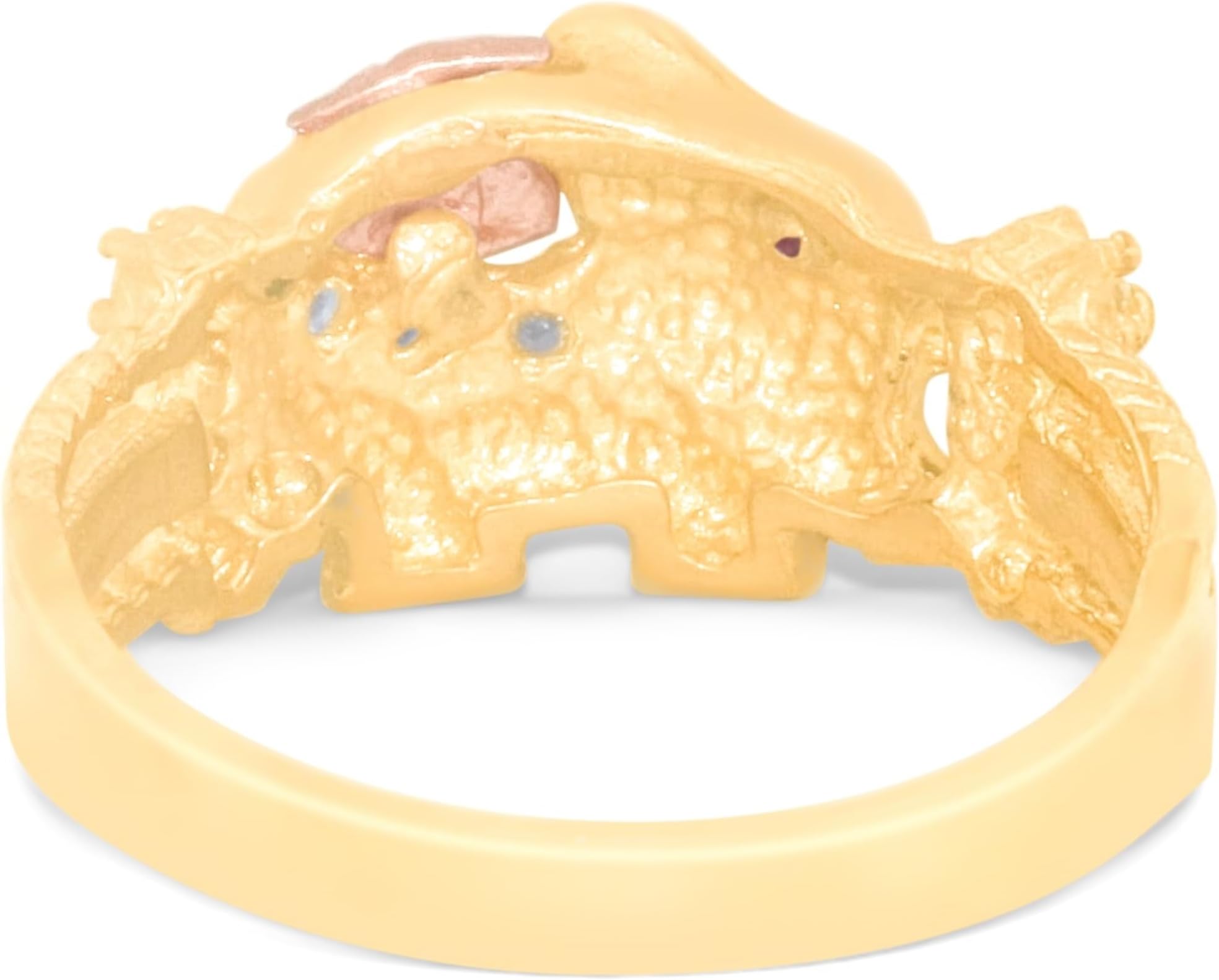 FEATURES— Designed with a detailed elephant motif, this ring symbolizes strength, wisdom, and good luck. The ruby eye and CZ accents add a dazzling touch that enhances its rich, meaningful design.