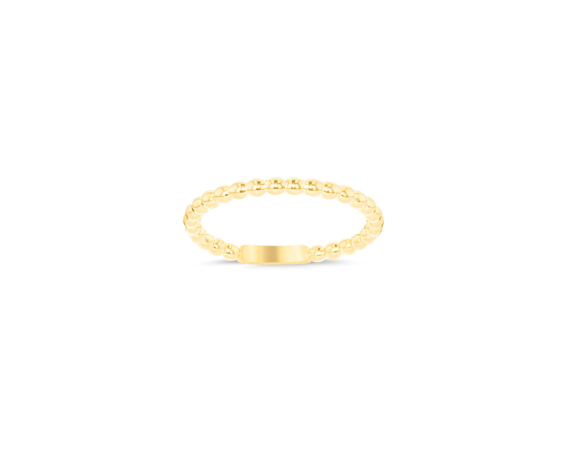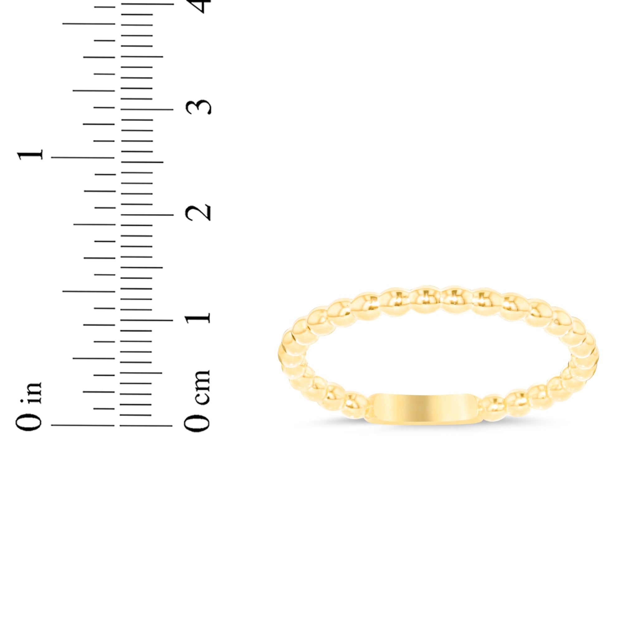 FEATURES— Polished beaded design with evenly spaced rounded spheres for a subtle textured look. This sleek and minimalist band is perfect worn alone or stacked with other rings for a layered style.