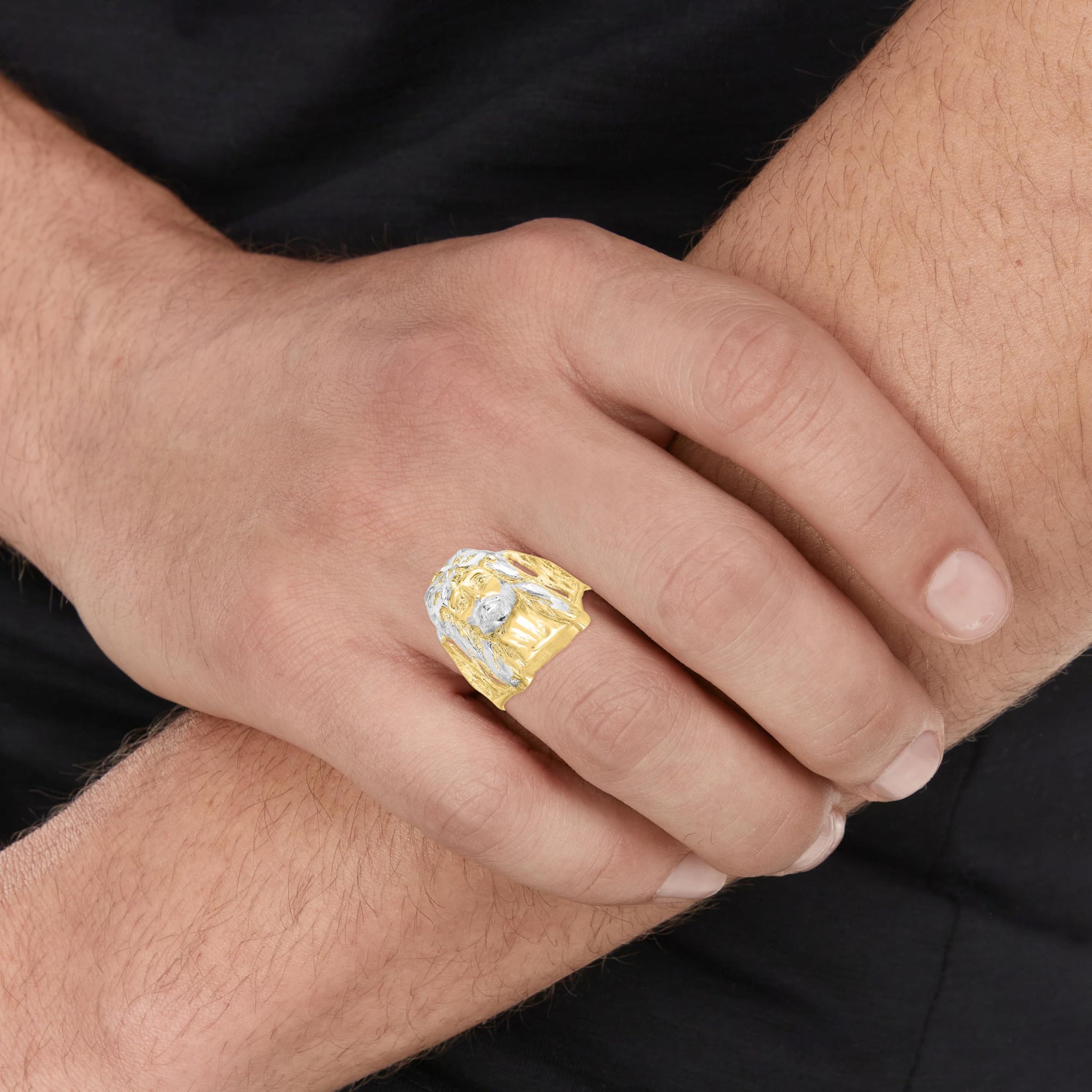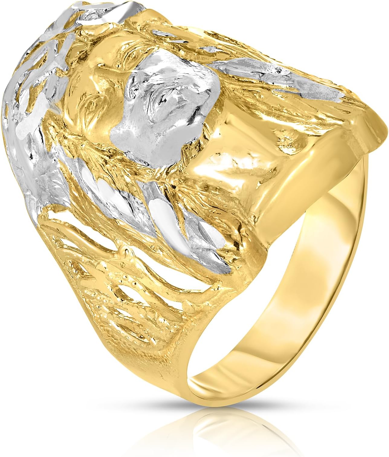 FEATURES— Elevate your accessory collection with the Floreo 10k Yellow Gold Two-Tone Face of Jesus Christ Head Ring. Designed with timeless elegance, its two-tone finish and detailed depiction of Jesus add a touch of spiritual significance. This ring seamlessly combines faith and fashion, making it a cherished addition to your collection.