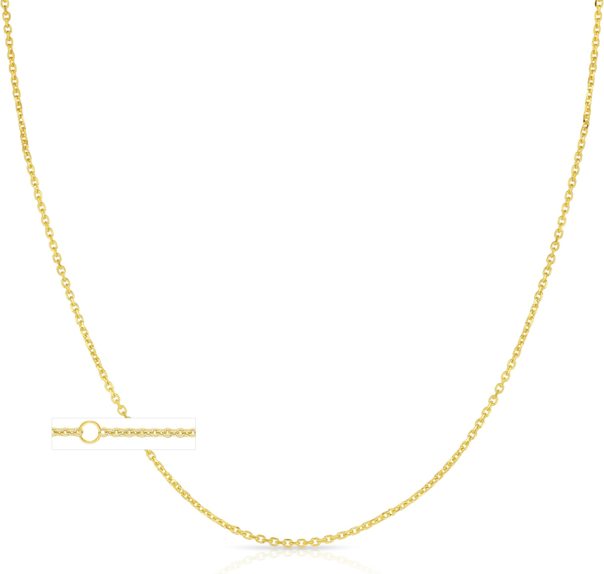FEATURES-Refined 0.87mm width with sparkling diamond-cut detailing for extra brilliance. This classic cable chain includes a single extension loop for easy adjustment between 16" and 18", making it perfect for layering or standalone elegance.
