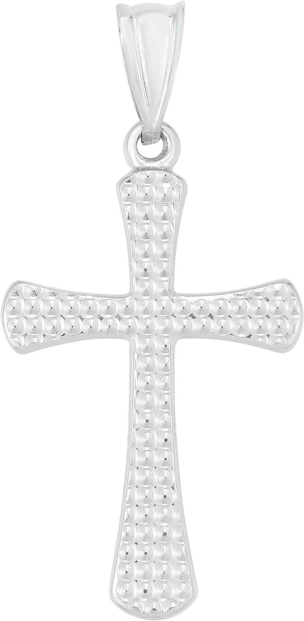 THE PERFECT GIFT— A radiant expression of faith and style, this diamond cut white gold cross pendant makes a cherished gift for baptisms, confirmations, anniversaries, or any meaningful celebration.