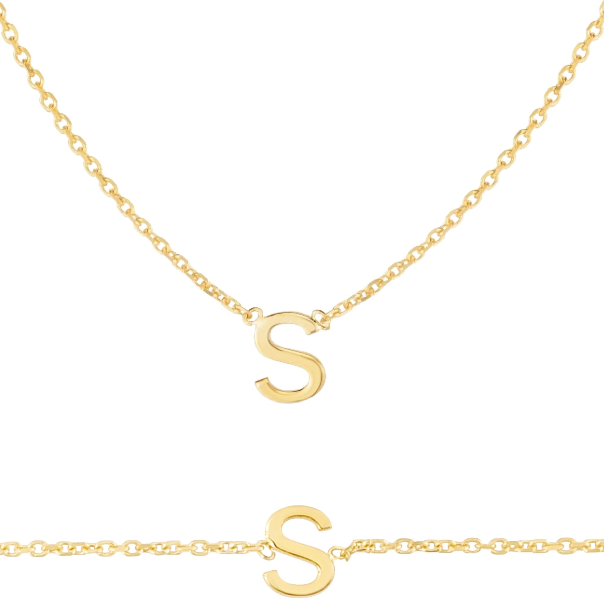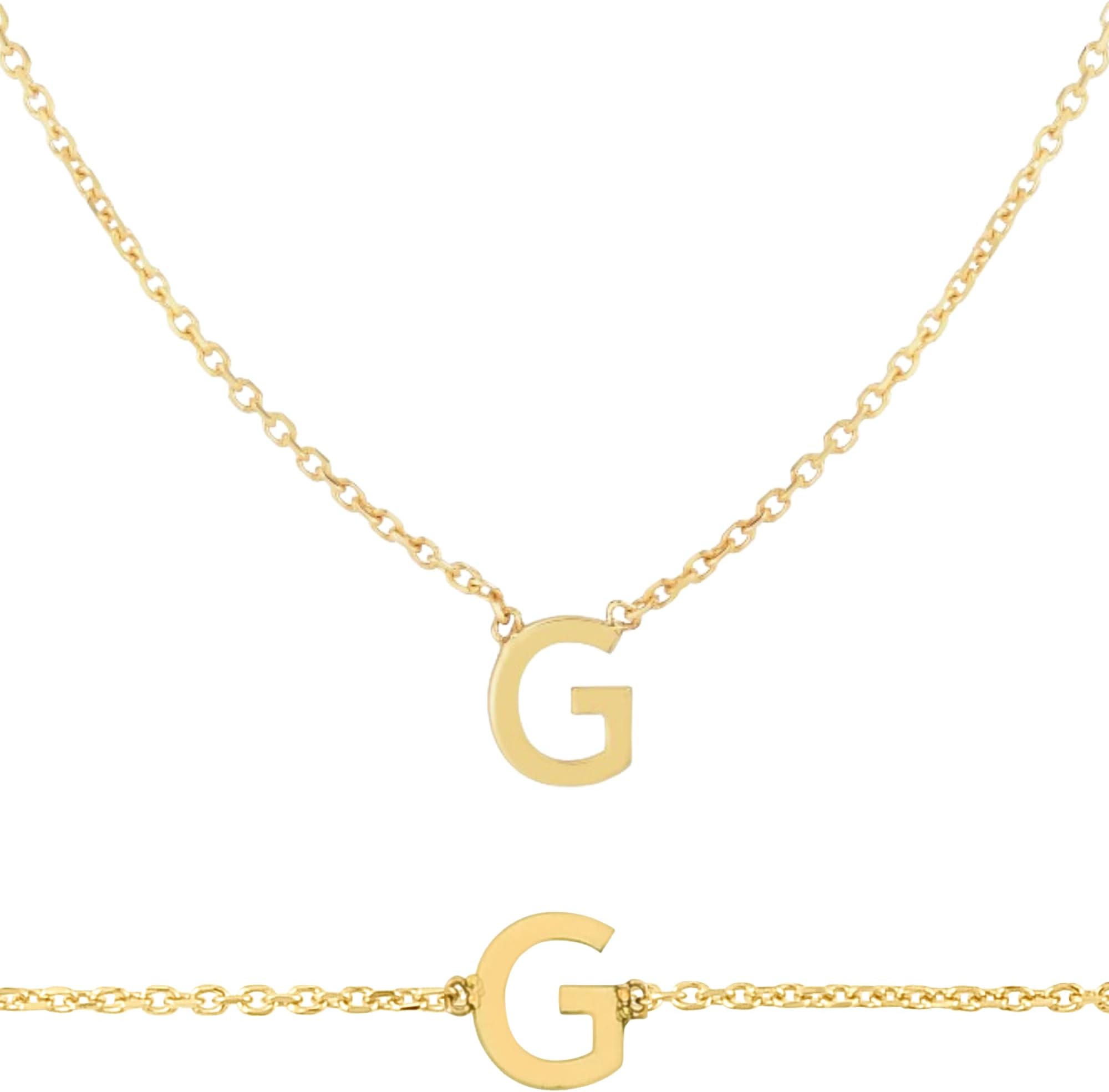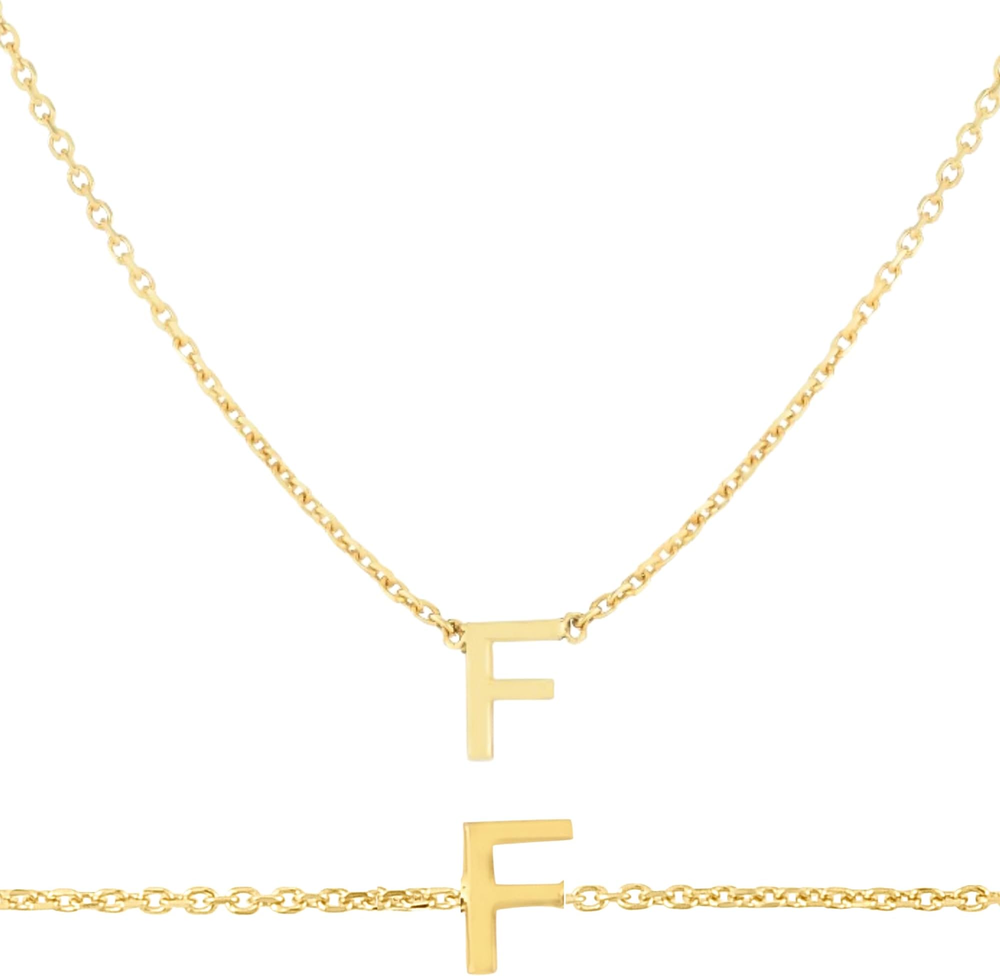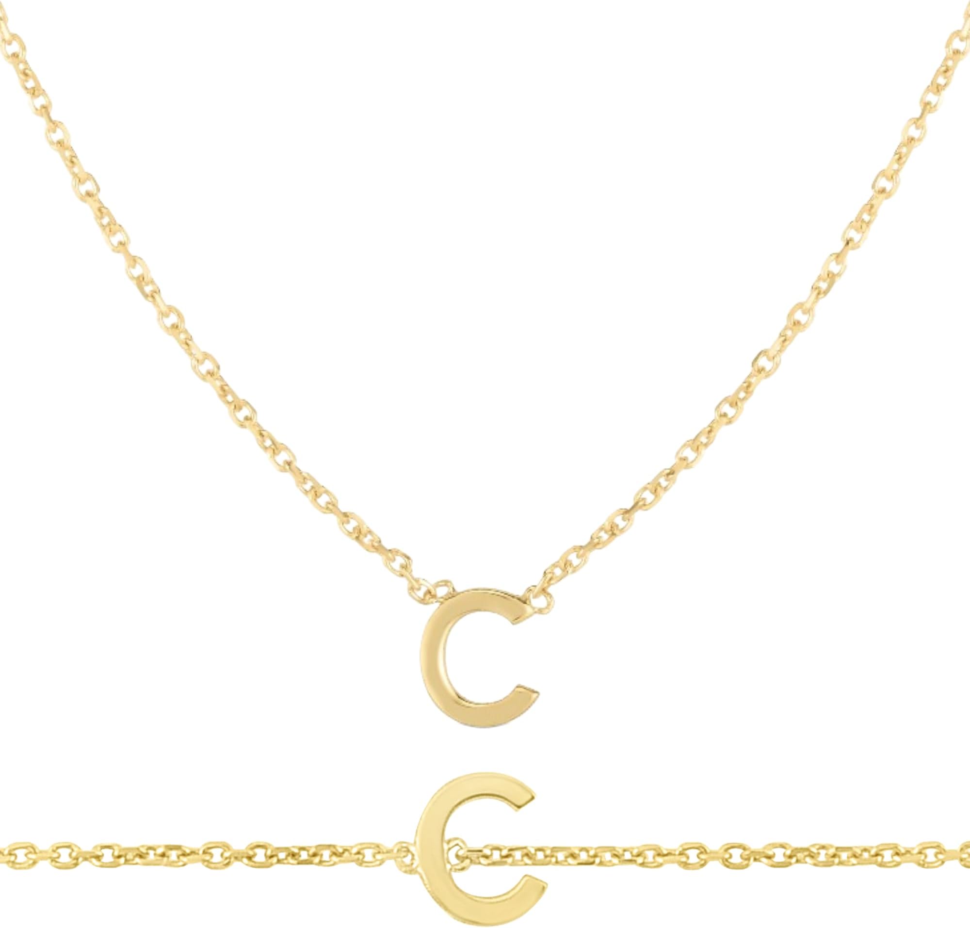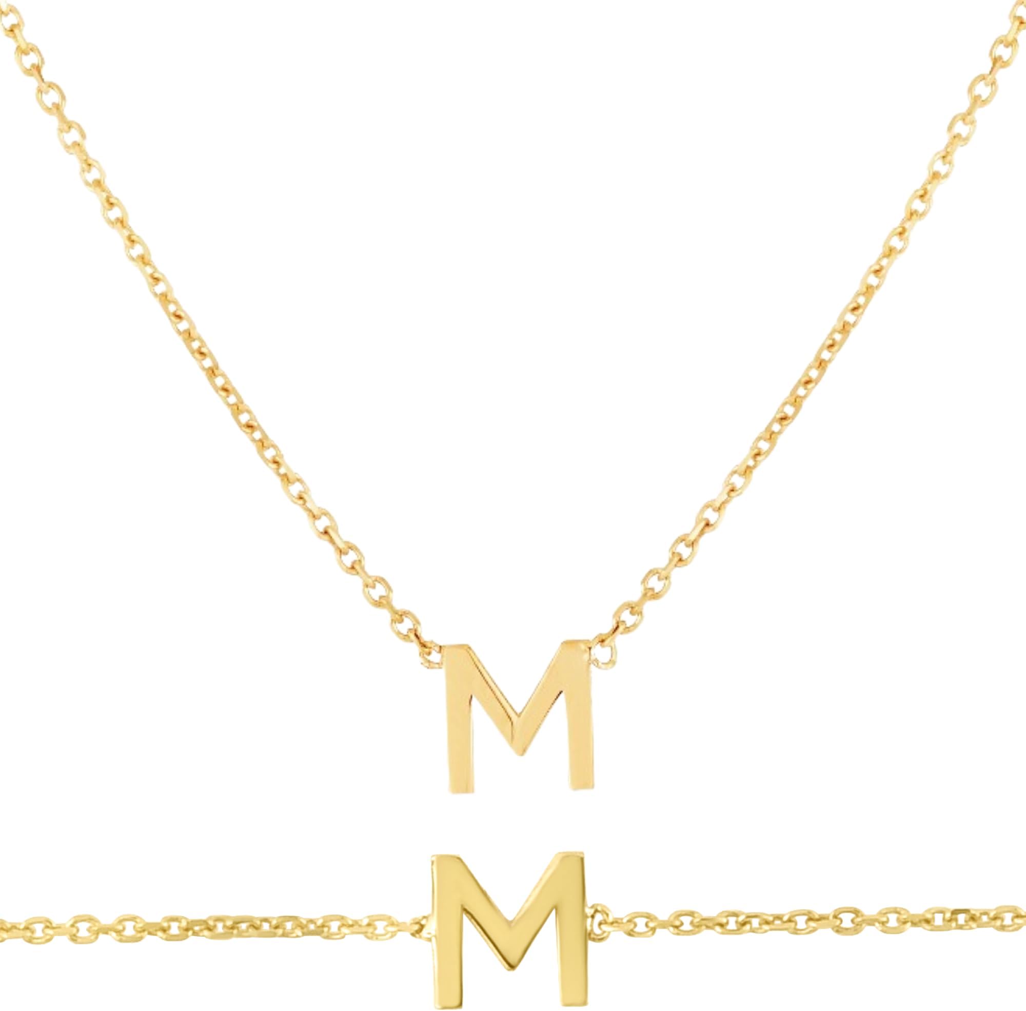 FEATURES— Designed with a sleek mini initial charm, this coordinated set celebrates individuality and refined simplicity. Each piece features a delicate cable chain — the necklace is 18" adjustable with a jump ring at 16", and the bracelet is 7" adjustable with a jump ring at 6.5", both secured with spring ring clasps for comfort and versatility.