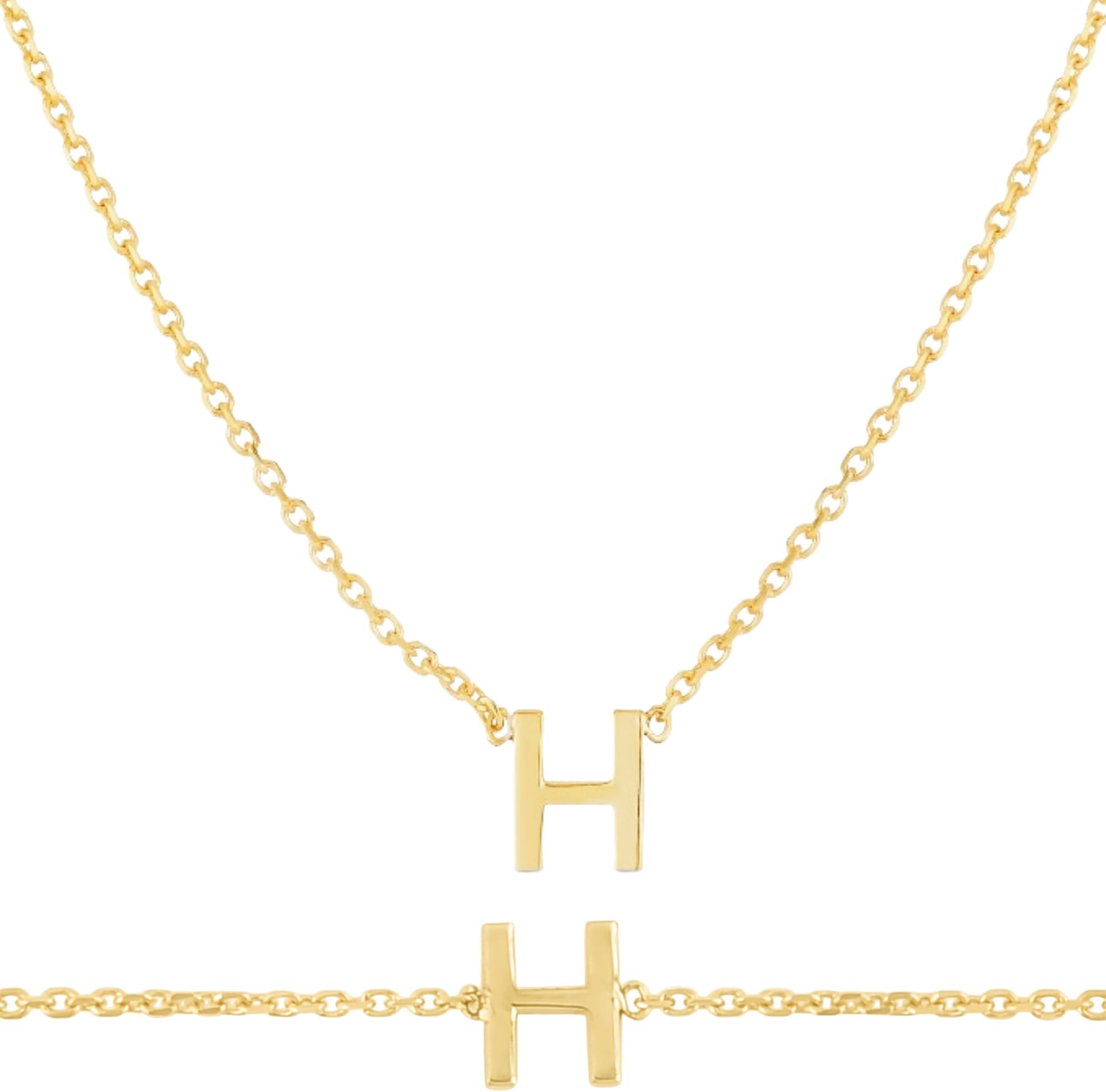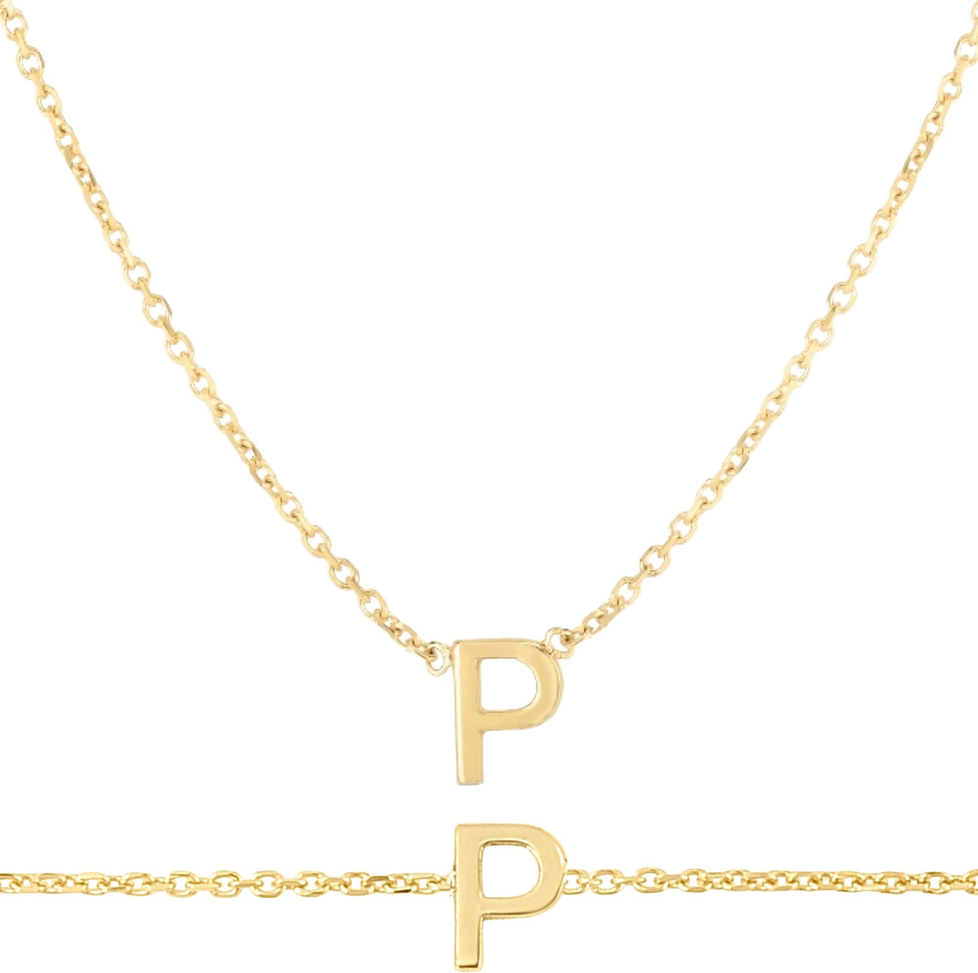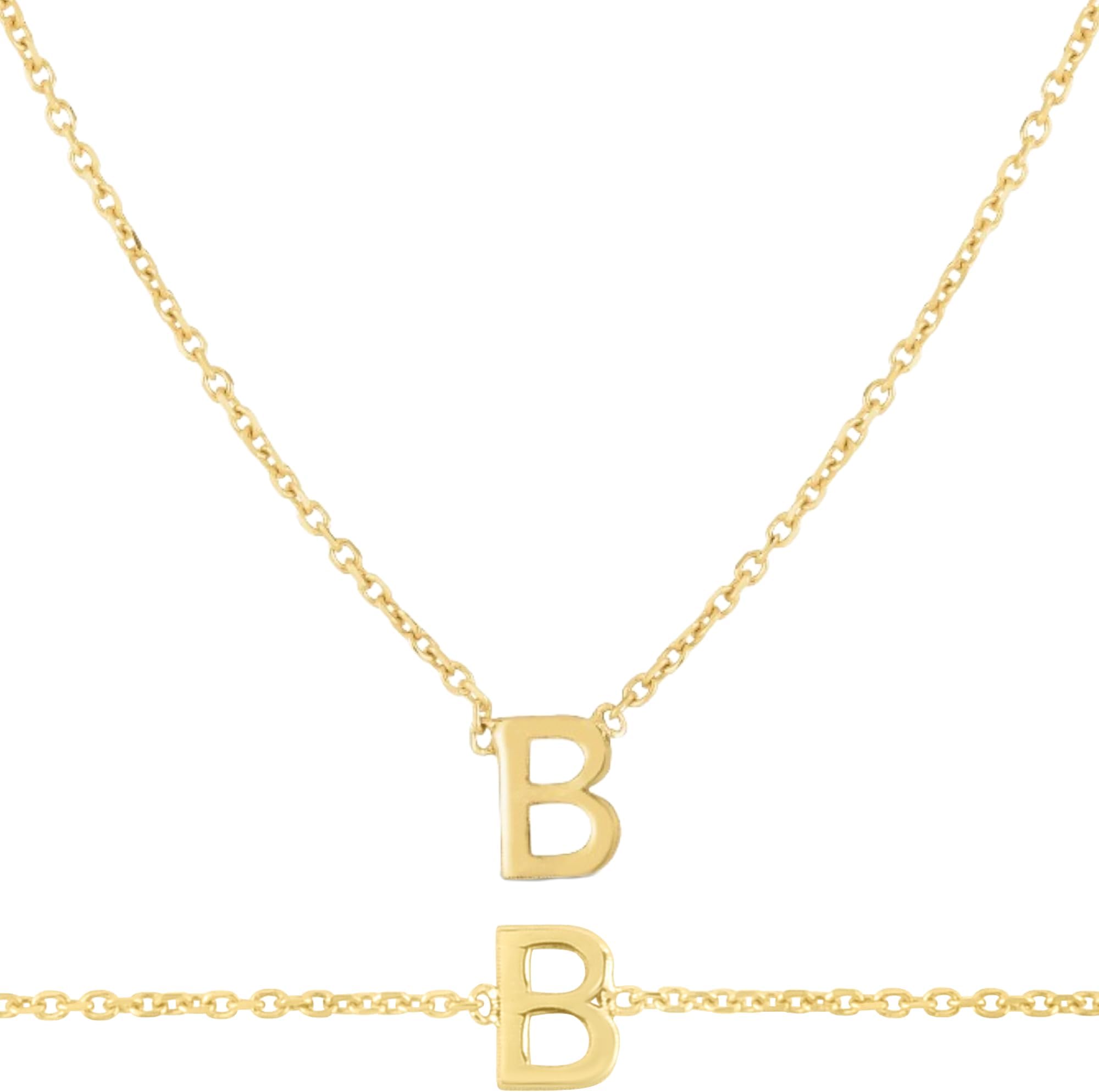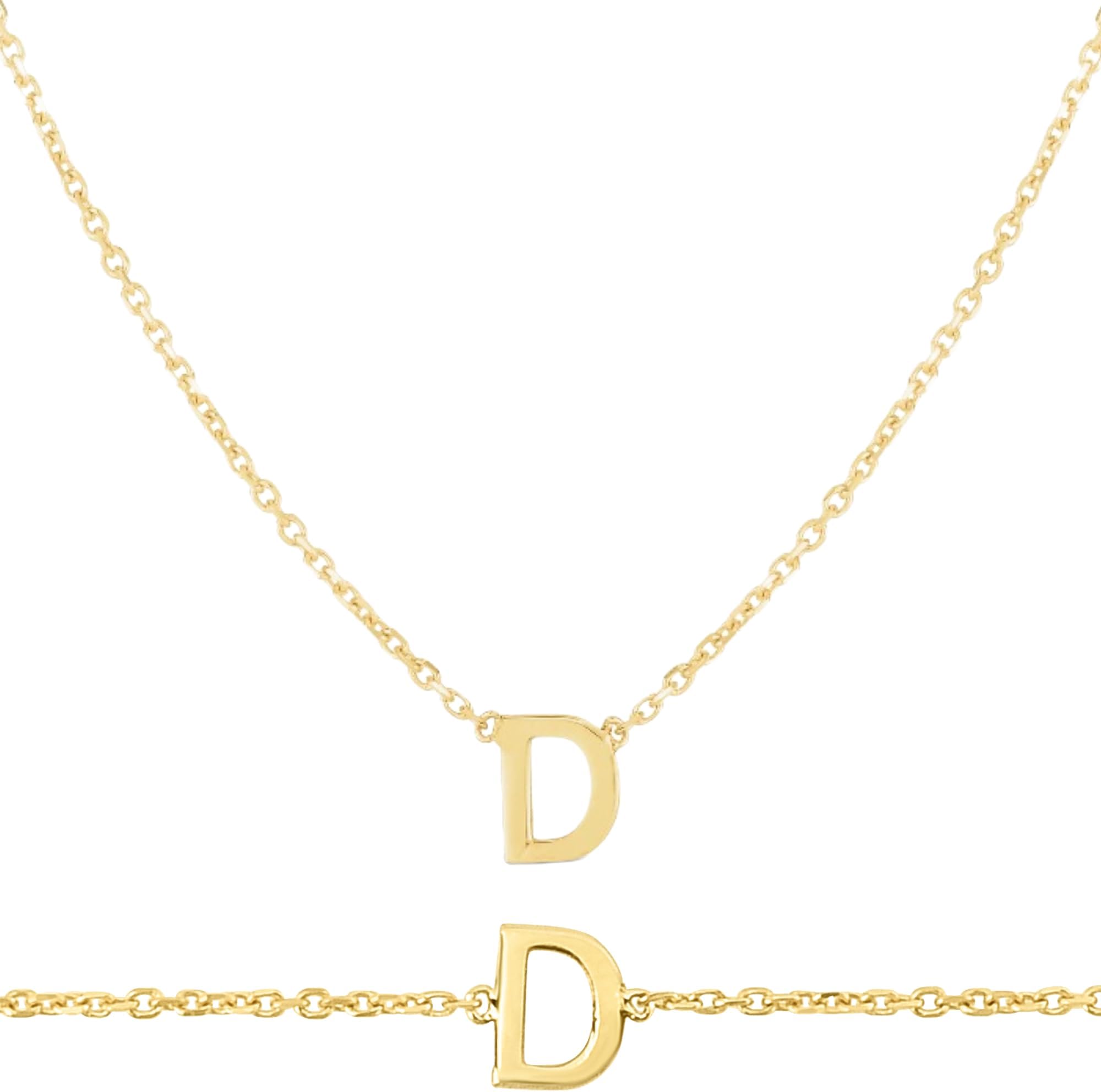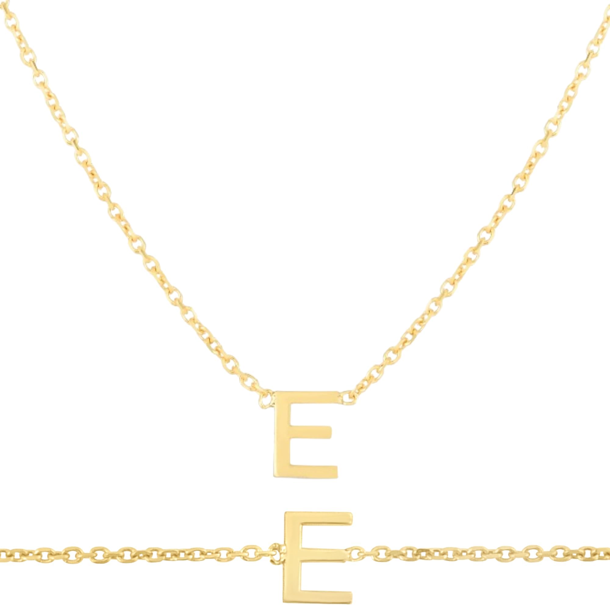 FEATURES— Designed with a sleek mini initial charm, this coordinated set celebrates individuality and refined simplicity. Each piece features a delicate cable chain — the necklace is 18" adjustable with a jump ring at 16", and the bracelet is 7" adjustable with a jump ring at 6.5", both secured with spring ring clasps for comfort and versatility.