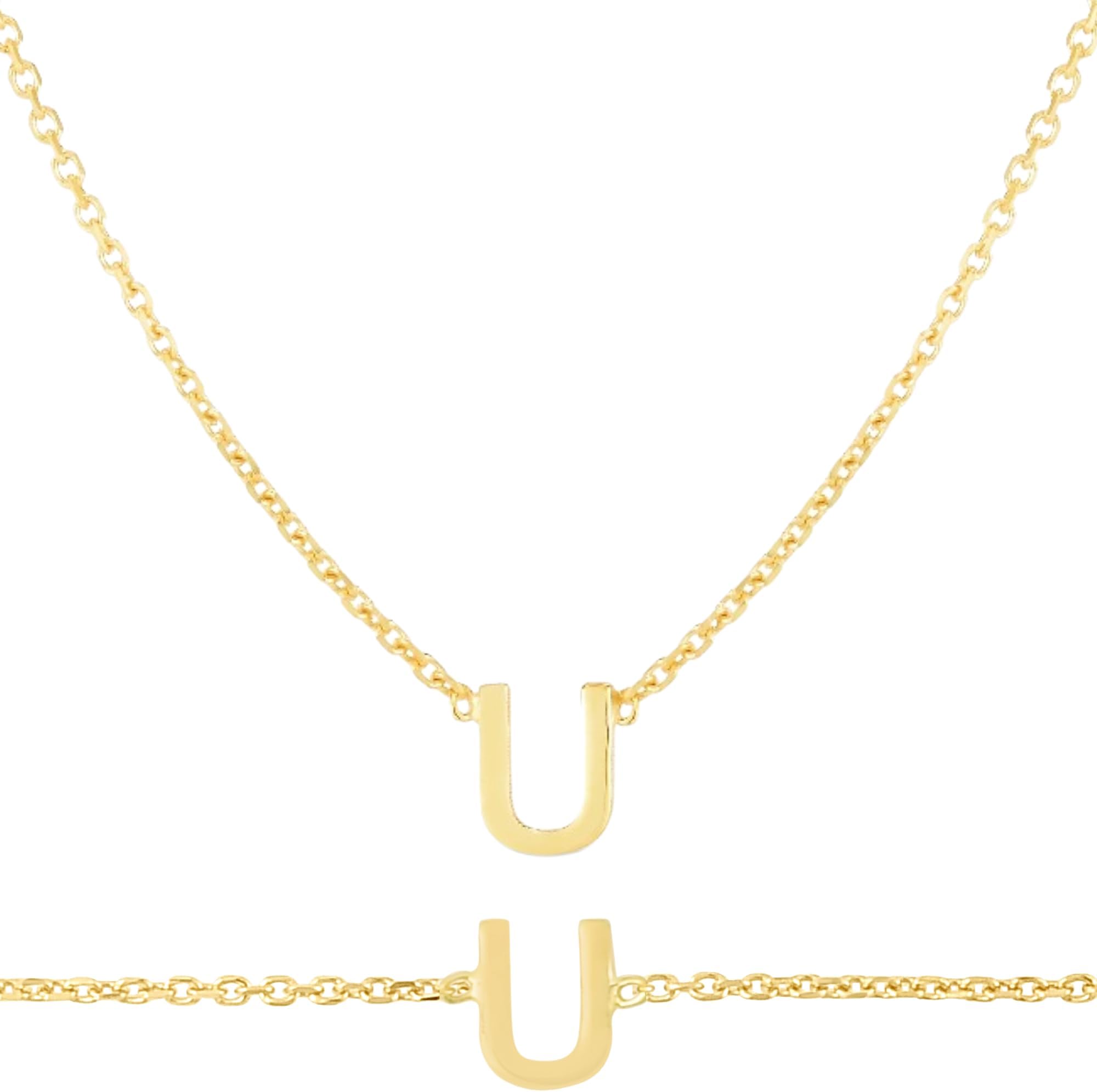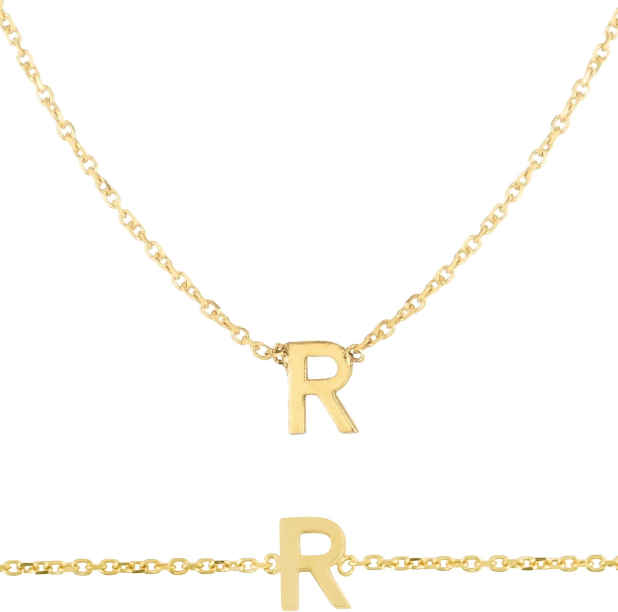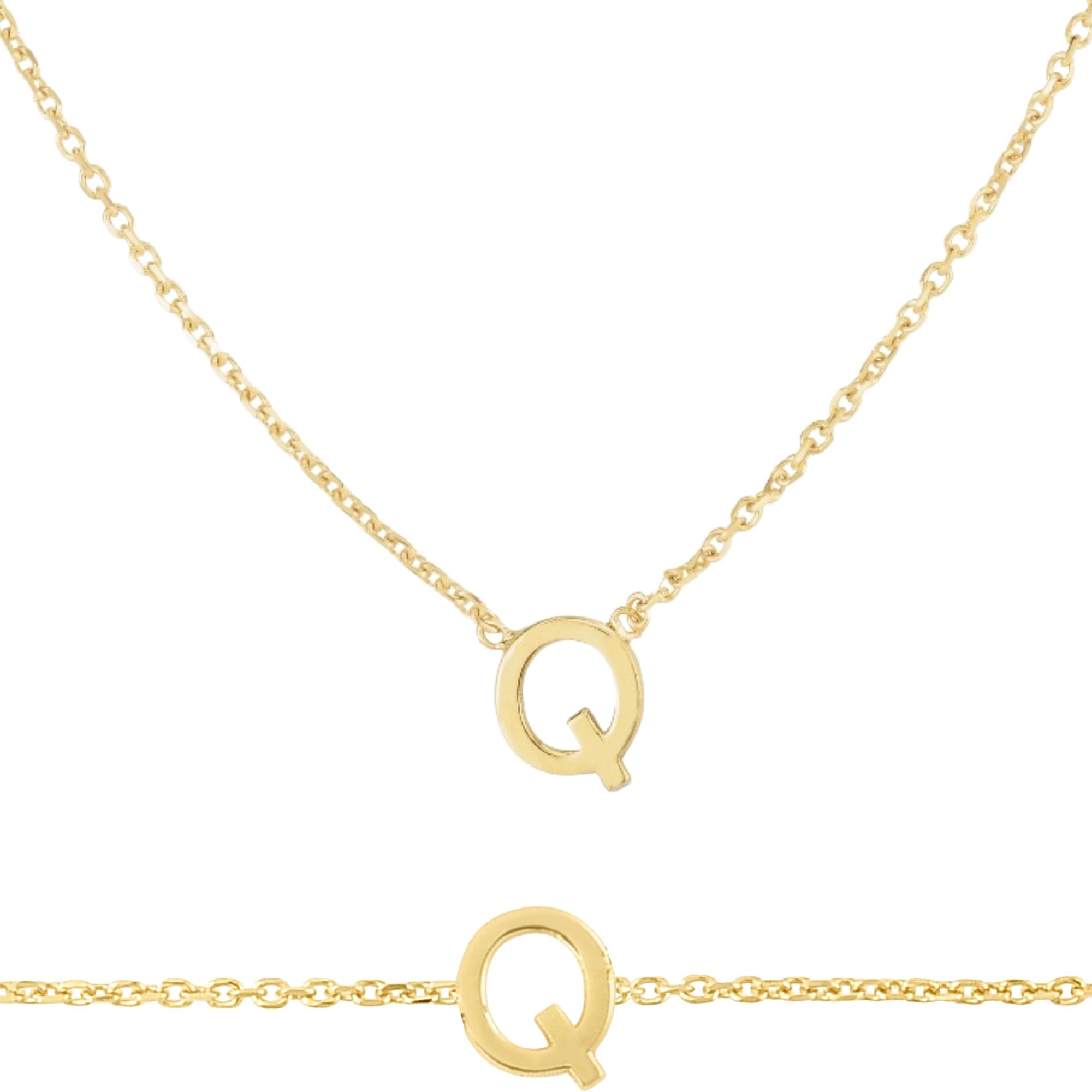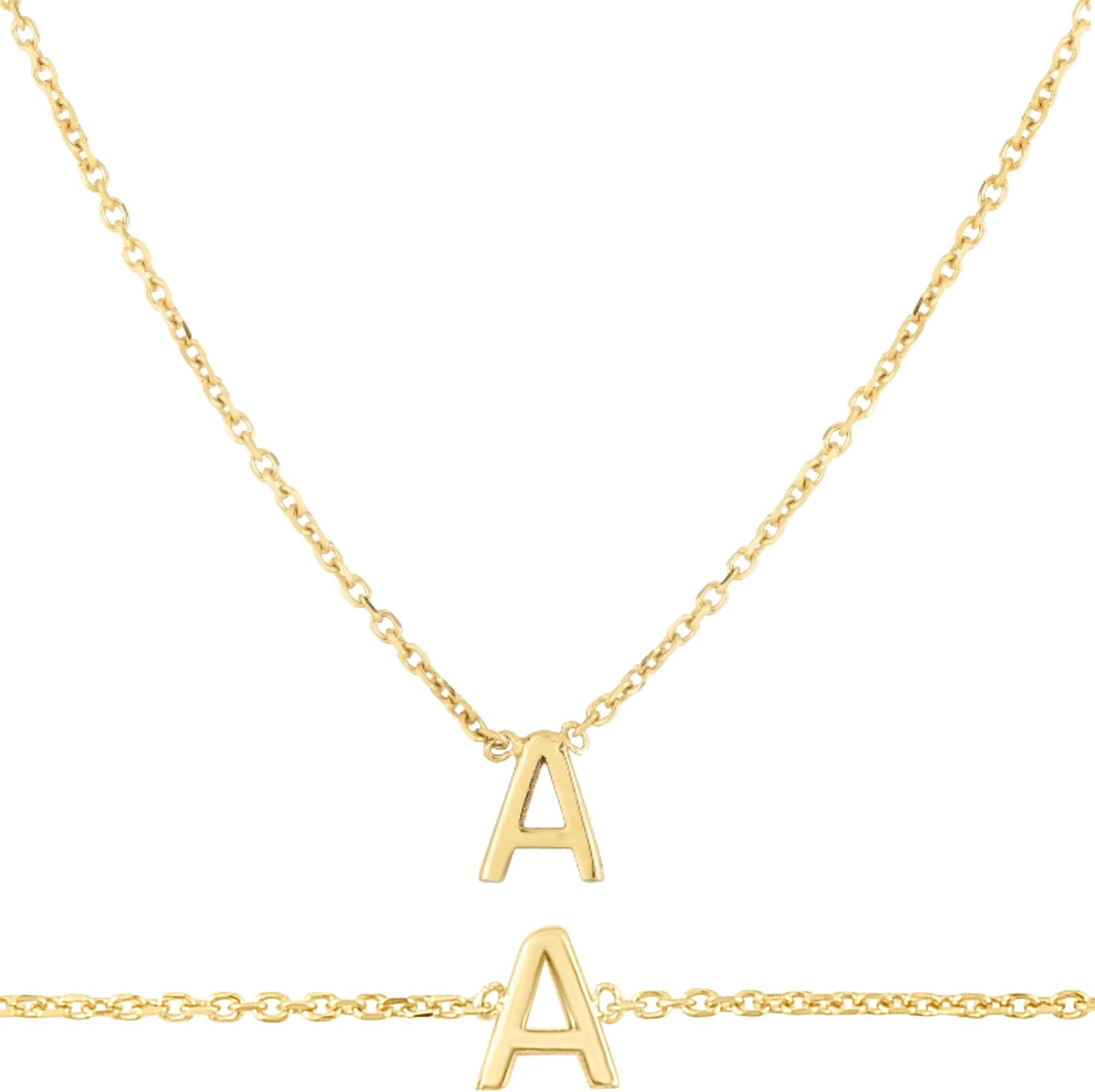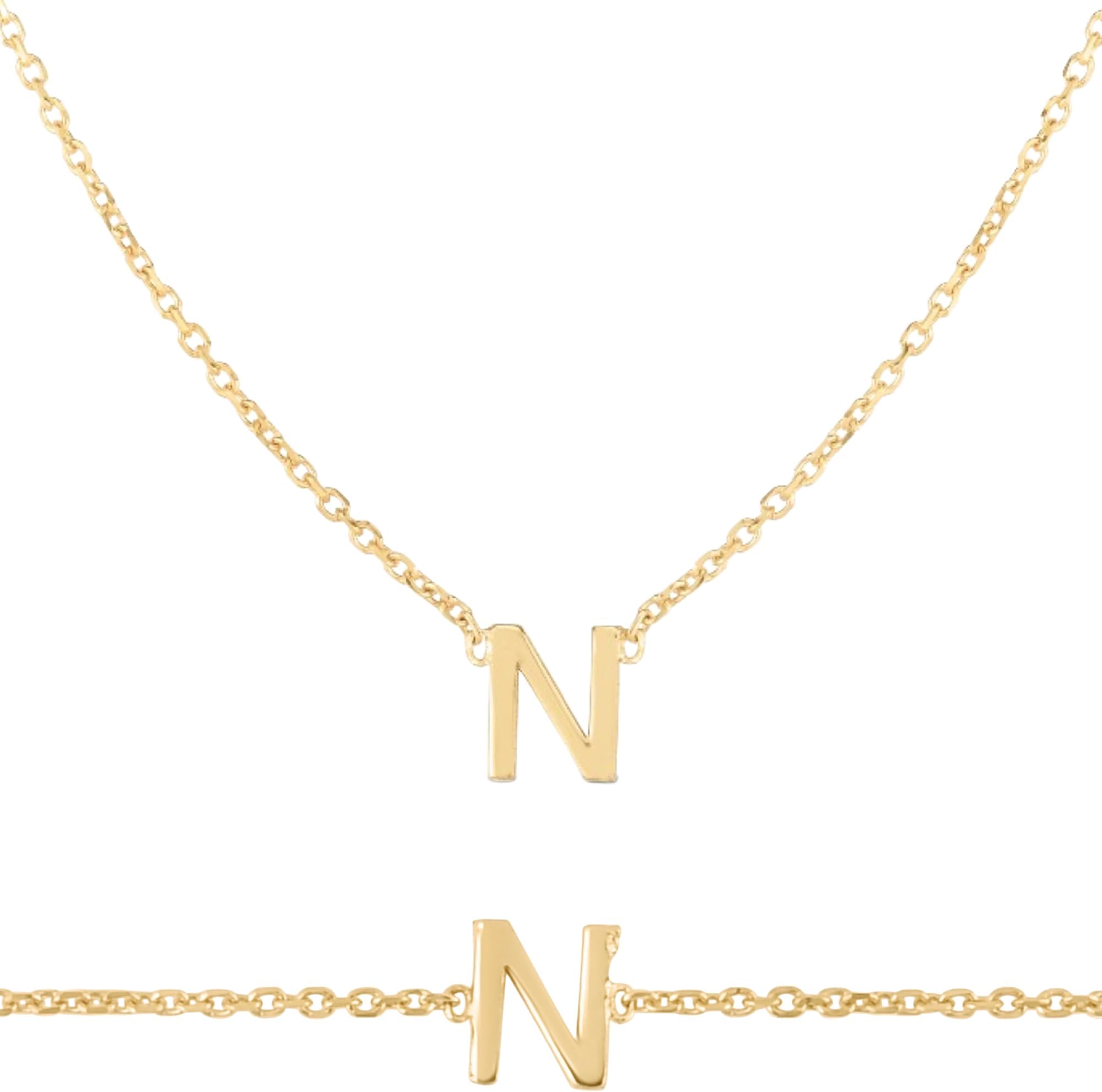 FEATURES— Designed with a sleek mini initial charm, this coordinated set celebrates individuality and refined simplicity. Each piece features a delicate cable chain — the necklace is 18" adjustable with a jump ring at 16", and the bracelet is 7" adjustable with a jump ring at 6.5", both secured with spring ring clasps for comfort and versatility.