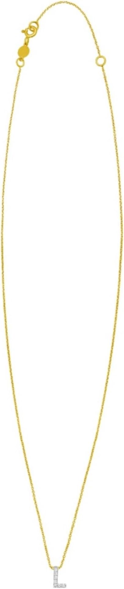 FEATURES— Designed with a natural diamond-studded initial charm, this piece celebrates individuality and refined brilliance. The pendant hangs gracefully from an 18" adjustable cable chain with a jump ring at 16", secured with a spring ring clasp for versatile styling.