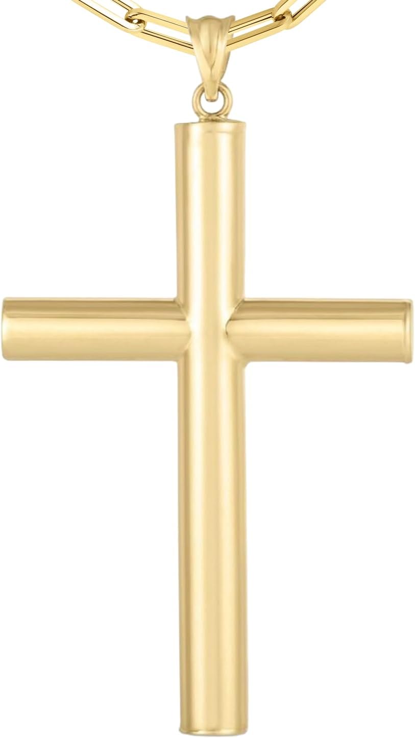 FEATURES— Styled in a classic cylinder tube form, this cross pendant blends smooth rounded lines with traditional symbolism. The sleek tubular silhouette gives it a refined presence that is both bold and graceful.