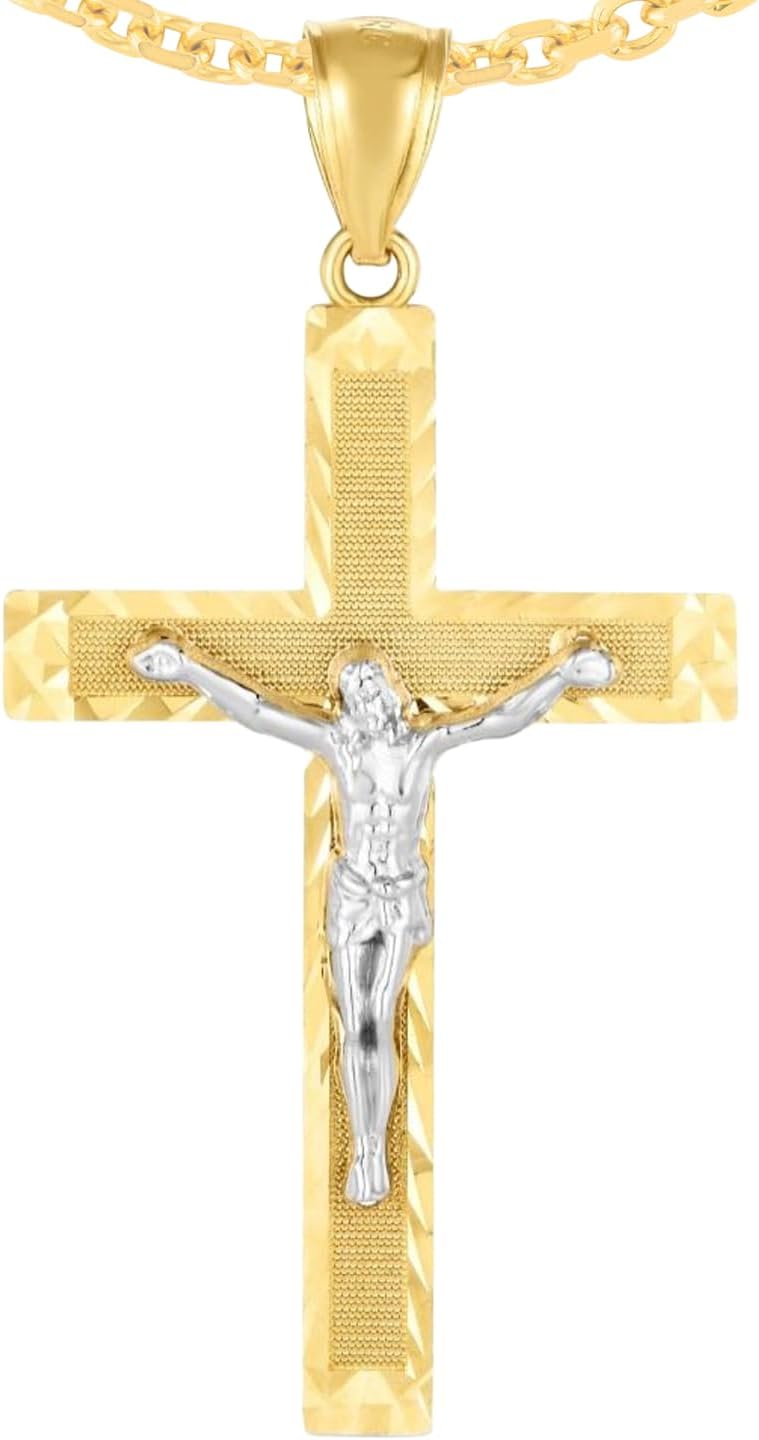 GENUINE 14K GOLD— Crafted from real 14k yellow gold, this pendant radiates brilliance with a polished golden glow. Its two-tone crucifix design adds striking contrast and depth, making it a timeless symbol of devotion.