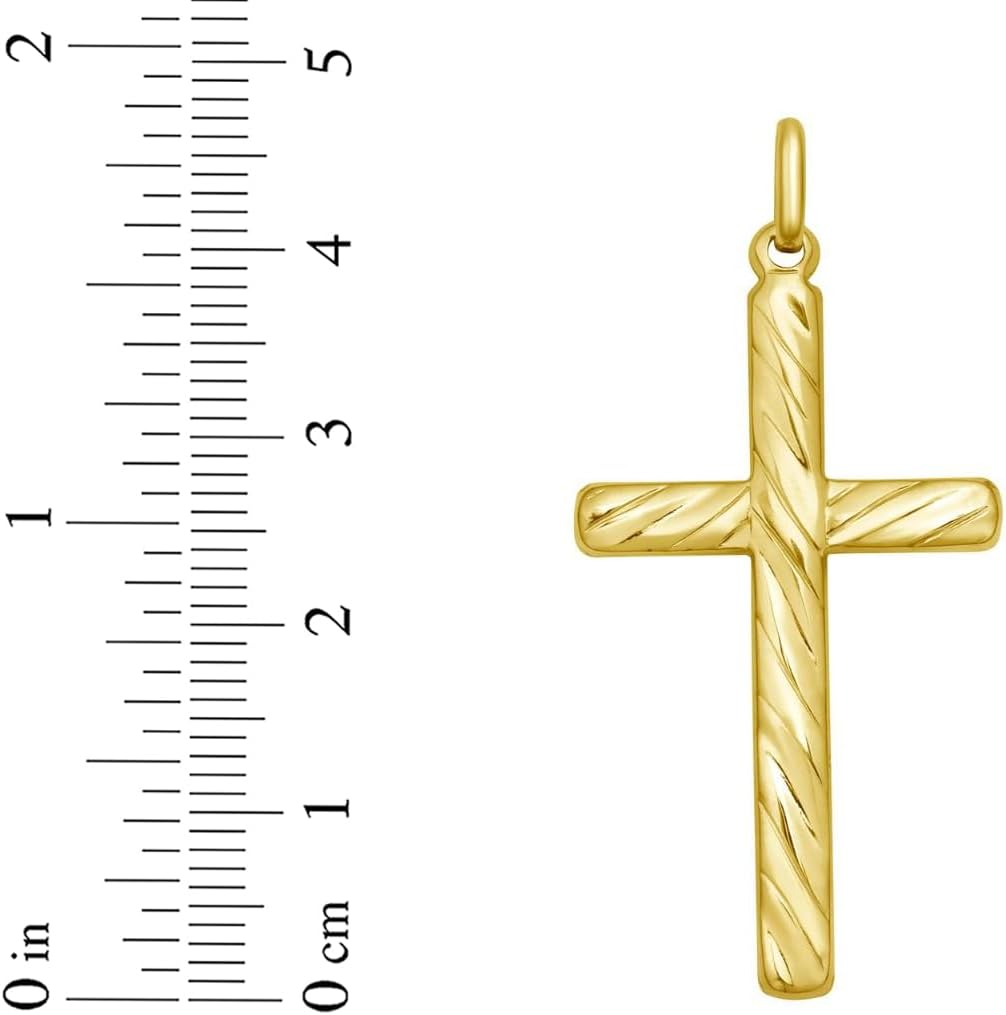 FEATURES— Styled with a textured surface, this cross pendant offers dimension and detail that catch the light beautifully. The intricate pattern adds depth, blending classic devotion with artistic craftsmanship.