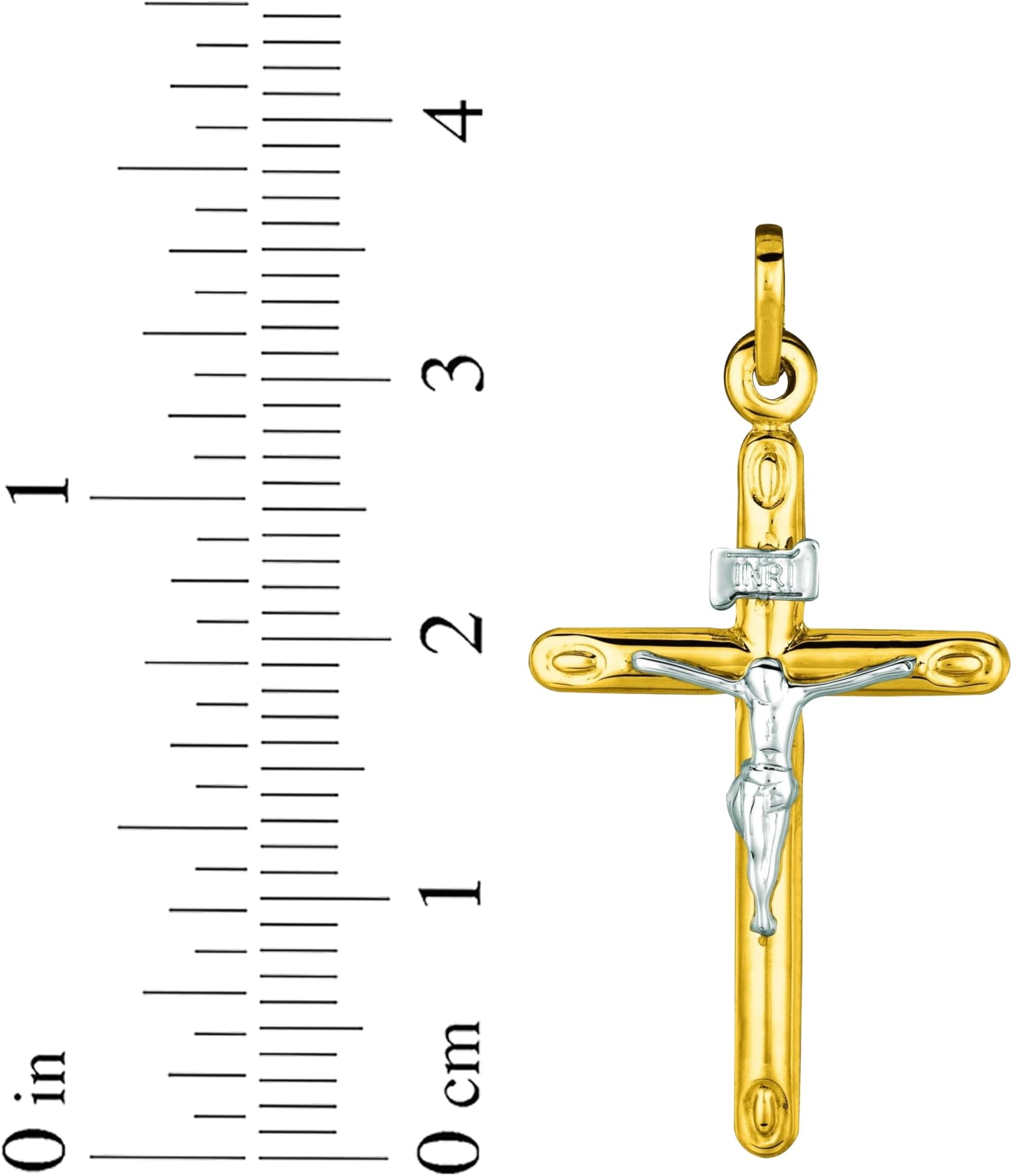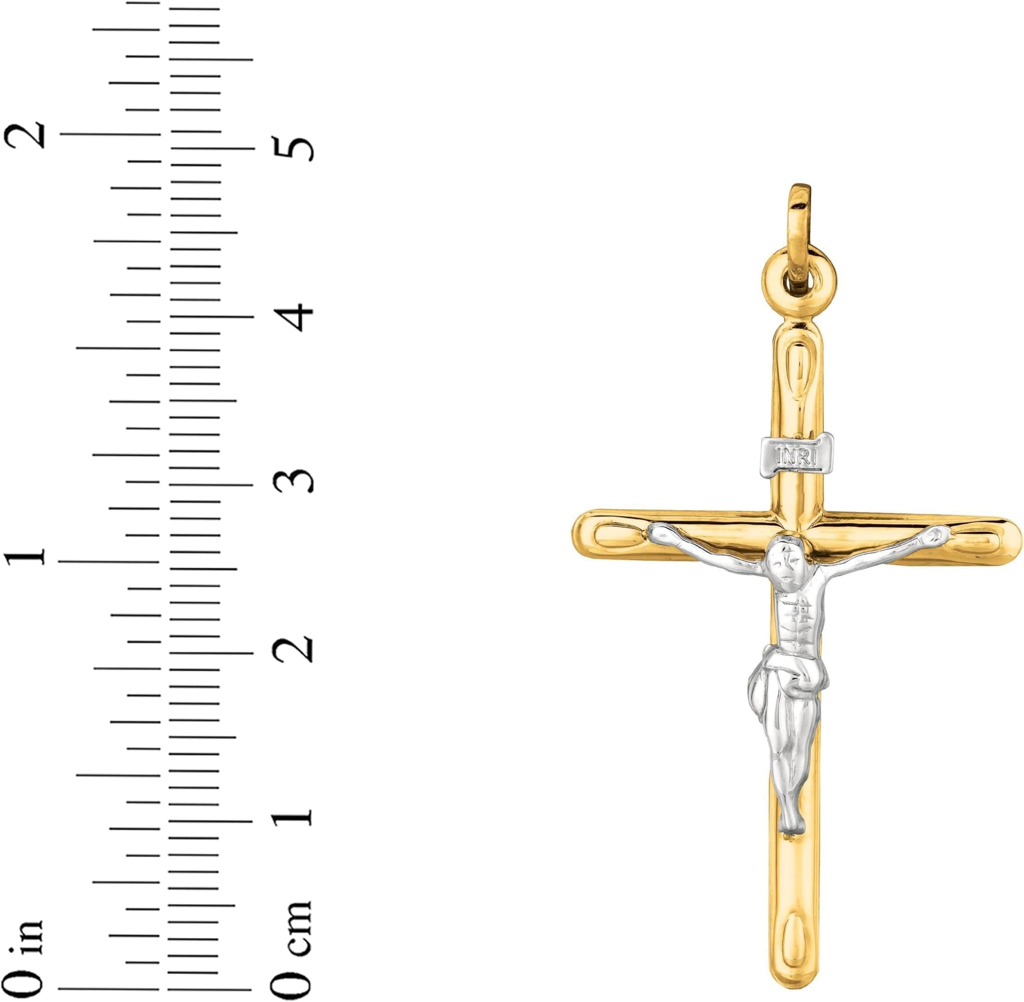 GENUINE 14K GOLD— Crafted from real 14k yellow gold, this pendant radiates brilliance with its timeless crucifix design. The two-tone styling enhances detail and depth, creating a striking and meaningful symbol of faith.