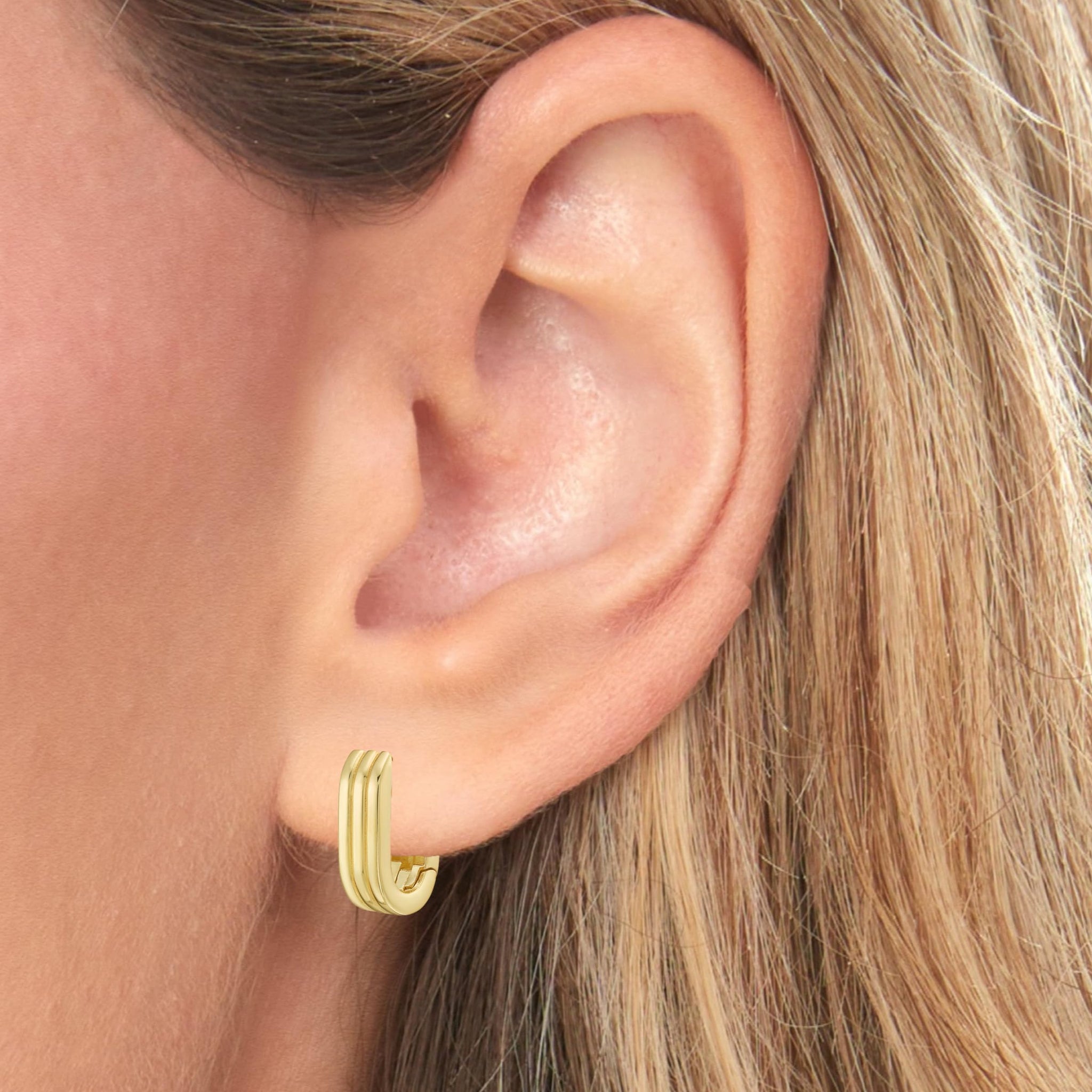 FEATURES— Designed in a triple row oval hoop style, these earrings offer a refined, dimensional look with graceful curves. The layered design enhances depth and shine, adding a touch of sophistication to every outfit.