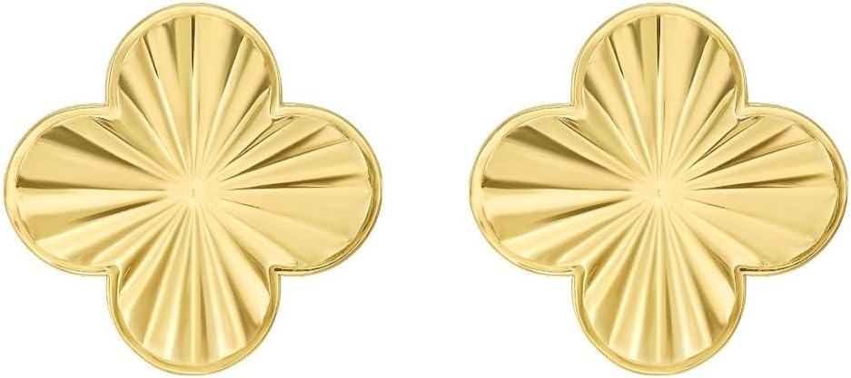 FEATURES— Designed with radiant textured clover stud earrings, they embody charm and good fortune in a beautifully detailed form. The softly shimmering texture of each petal catches the light, creating a graceful and luminous effect.