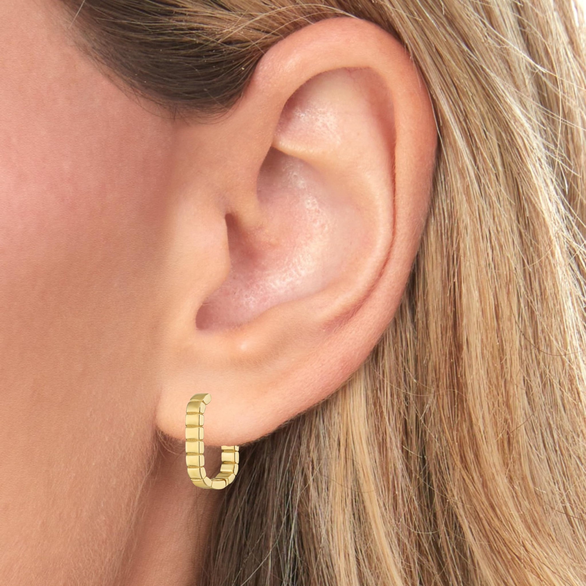 FEATURES— Designed in a polished ribbed oval hoop style, these earrings blend textured detail with graceful curves for a sophisticated look. The ribbed design enhances light reflection, adding subtle brilliance from every angle.