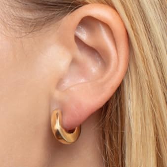 FEATURES— Designed in a thick round huggie hoop style, these earrings combine bold form with refined simplicity. The compact design hugs the ear gracefully, offering a sleek and modern appeal.
