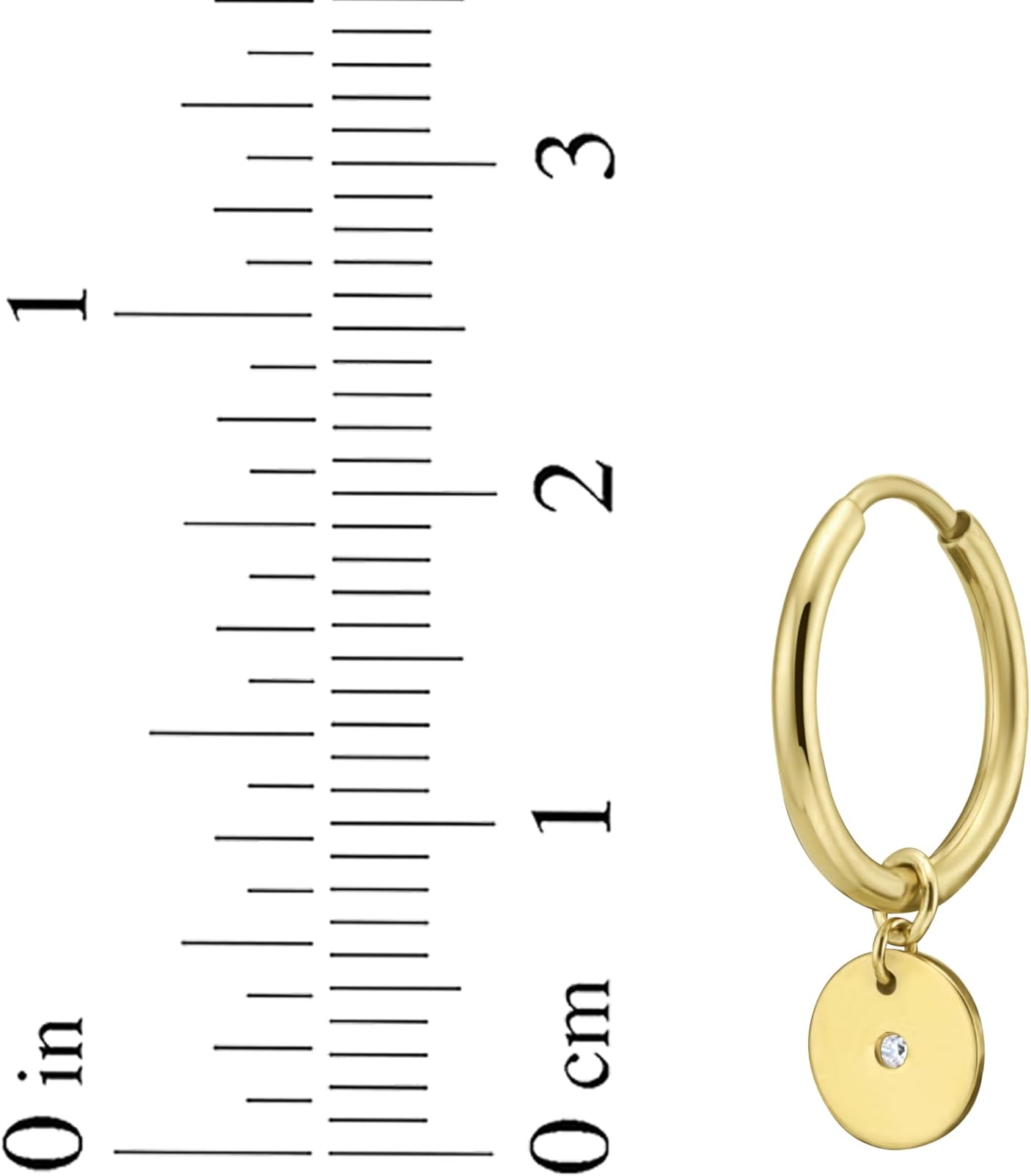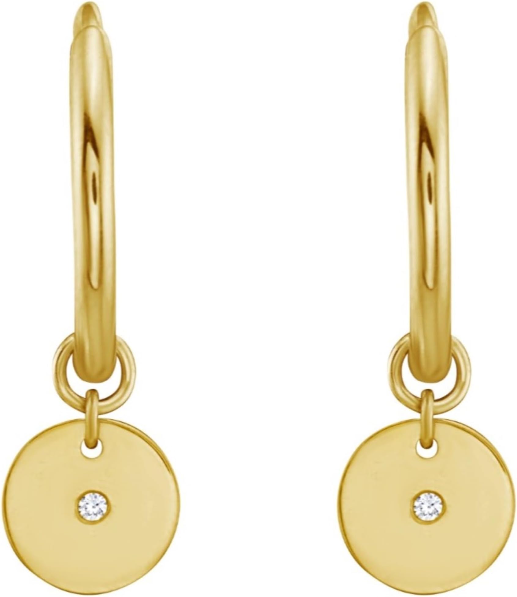 FEATURES— Designed in a disc, a natural diamond charm hoop style, these earrings pair sparkling accents with a sleek hoop silhouette. The dangling disc charms add movement and brilliance, creating a refined, eye-catching effect.