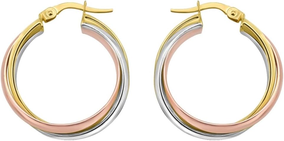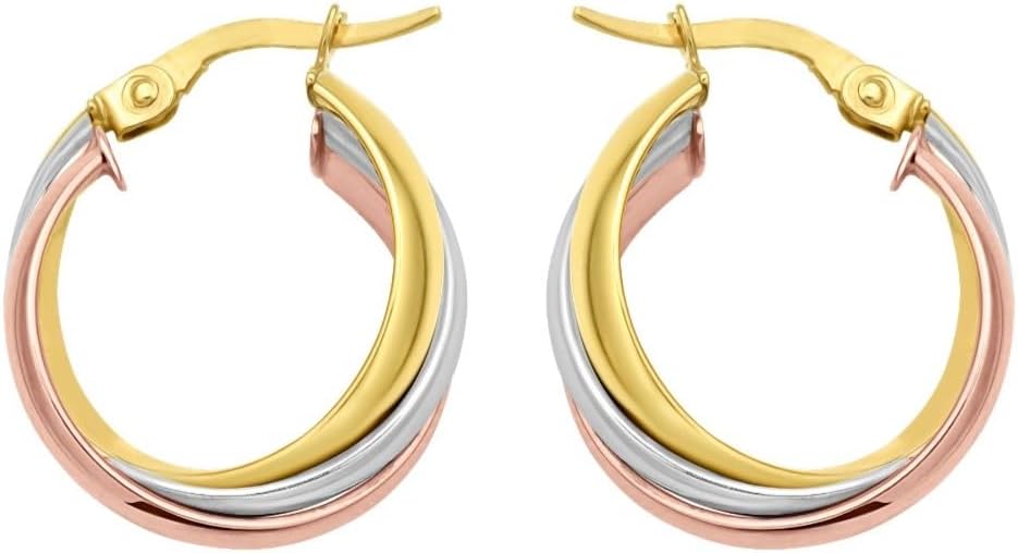 FEATURES— Designed with stunning trinity woven hoop tri-color earrings and a secure hinged clasp, they showcase expert craftsmanship and refined detail. The interlaced design symbolizes unity and balance, while the mixed metals add depth and sophistication.