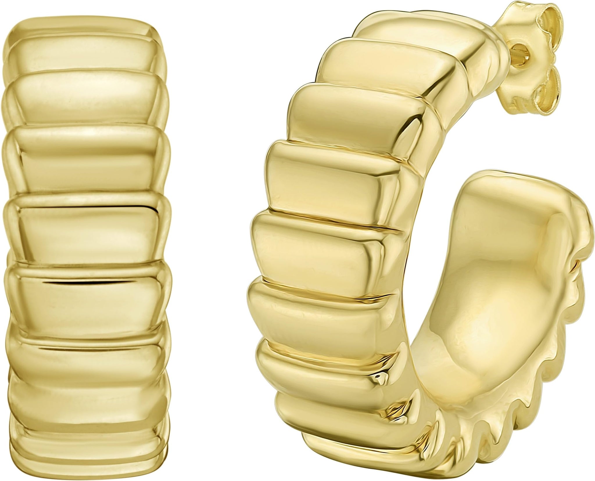 FEATURES— Designed with elegant ribbed straight edge C-hoop earrings, they blend modern geometry with classic texture for a refined, stylish appeal. The ribbed detailing creates depth and dimension, reflecting light beautifully with every turn.