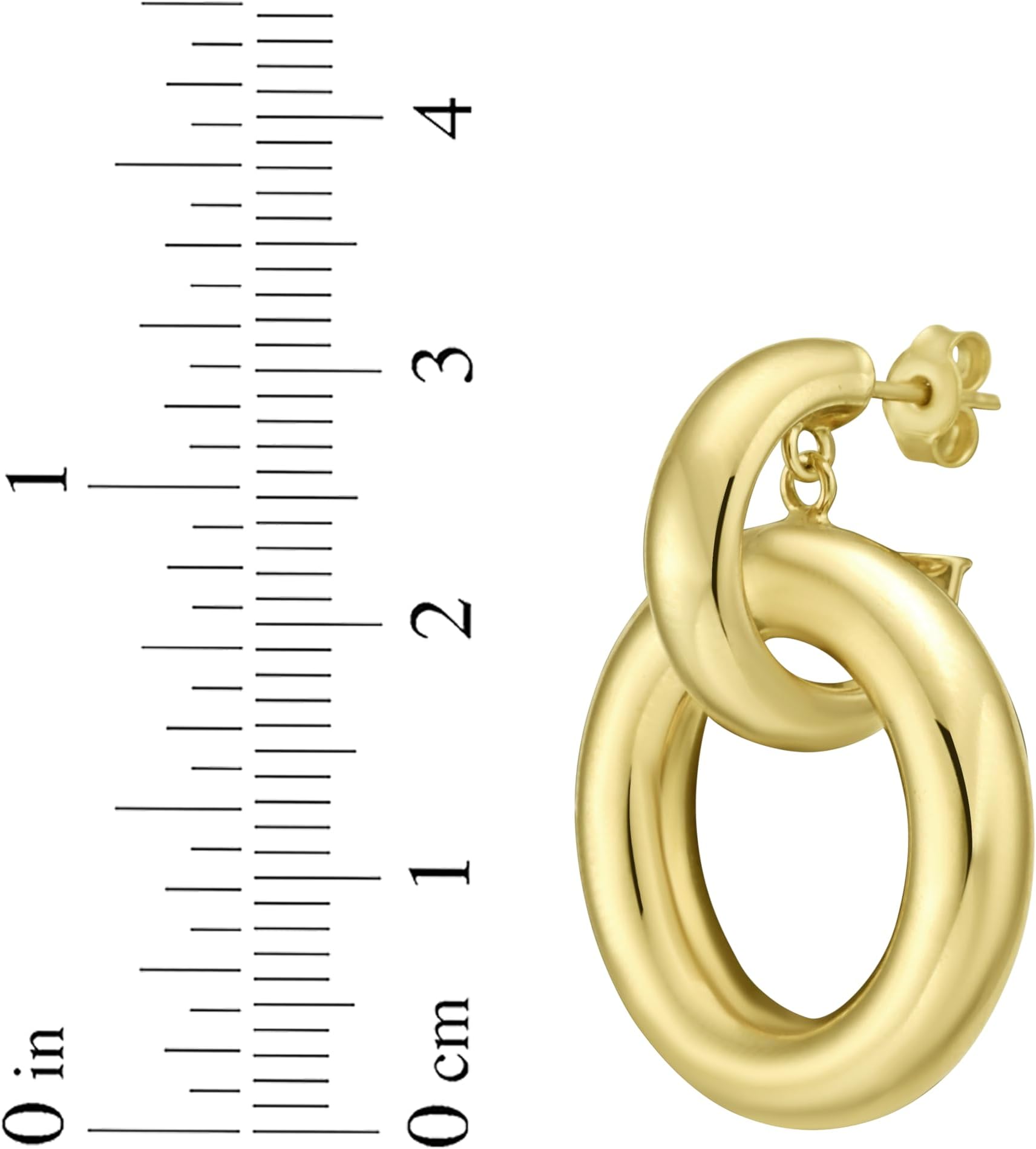 FEATURES— Designed in a round circle linked hoop style, these earrings feature interlocking circular links that create fluid movement and visual depth. The open design blends classic charm with contemporary flair.