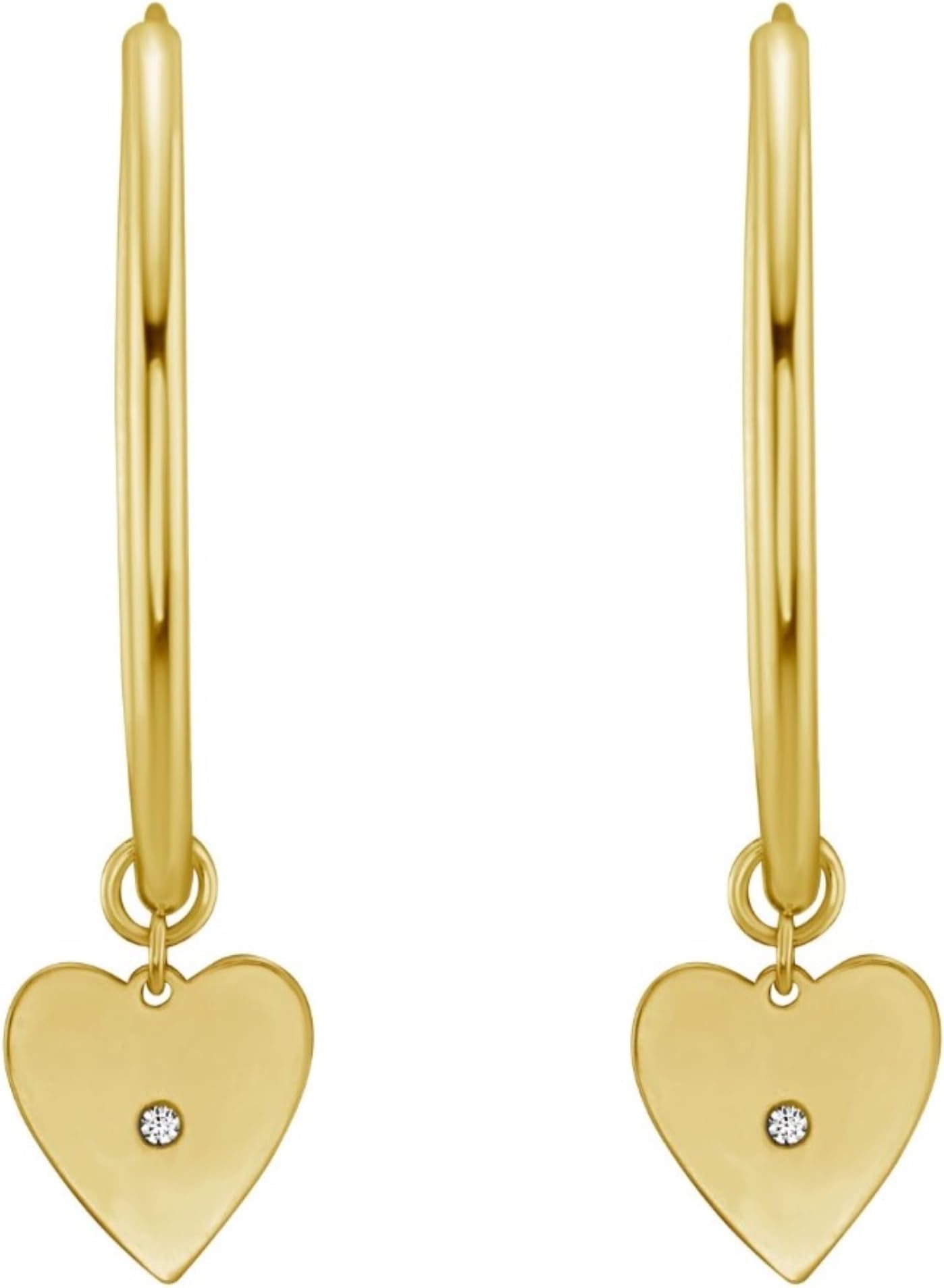 FEATURES— Designed in a heart, a natural diamond charm hoop style, these earrings combine romantic charm with sparkling sophistication. The heart-shaped charm with natural stone accent dangles gracefully, catching the light for a captivating shimmer.