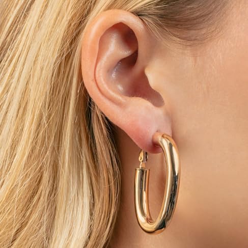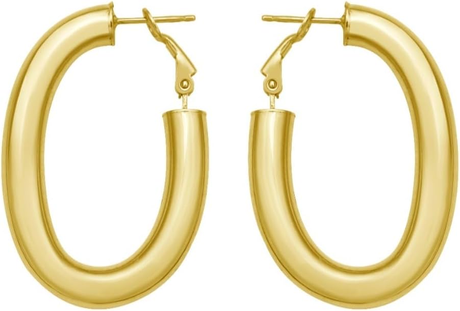FEATURES— Designed in an oval omega hoop style, these earrings blend classic form with modern refinement. The smooth oval contour and graceful curvature create a sleek, elongated profile that flatters every face.
