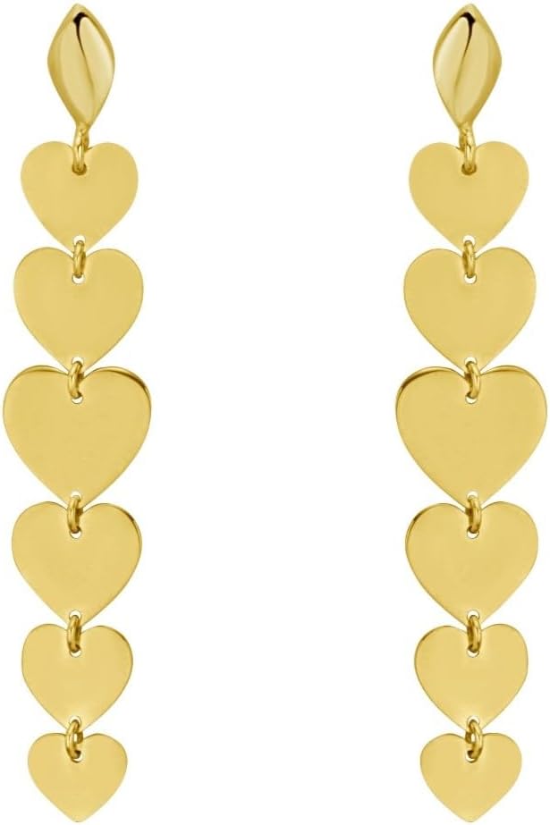 FEATURES— Designed in a hearts dangle stud style, these earrings feature cascading heart motifs that move gracefully with every turn. The charming design captures romance and femininity in a refined, modern form.