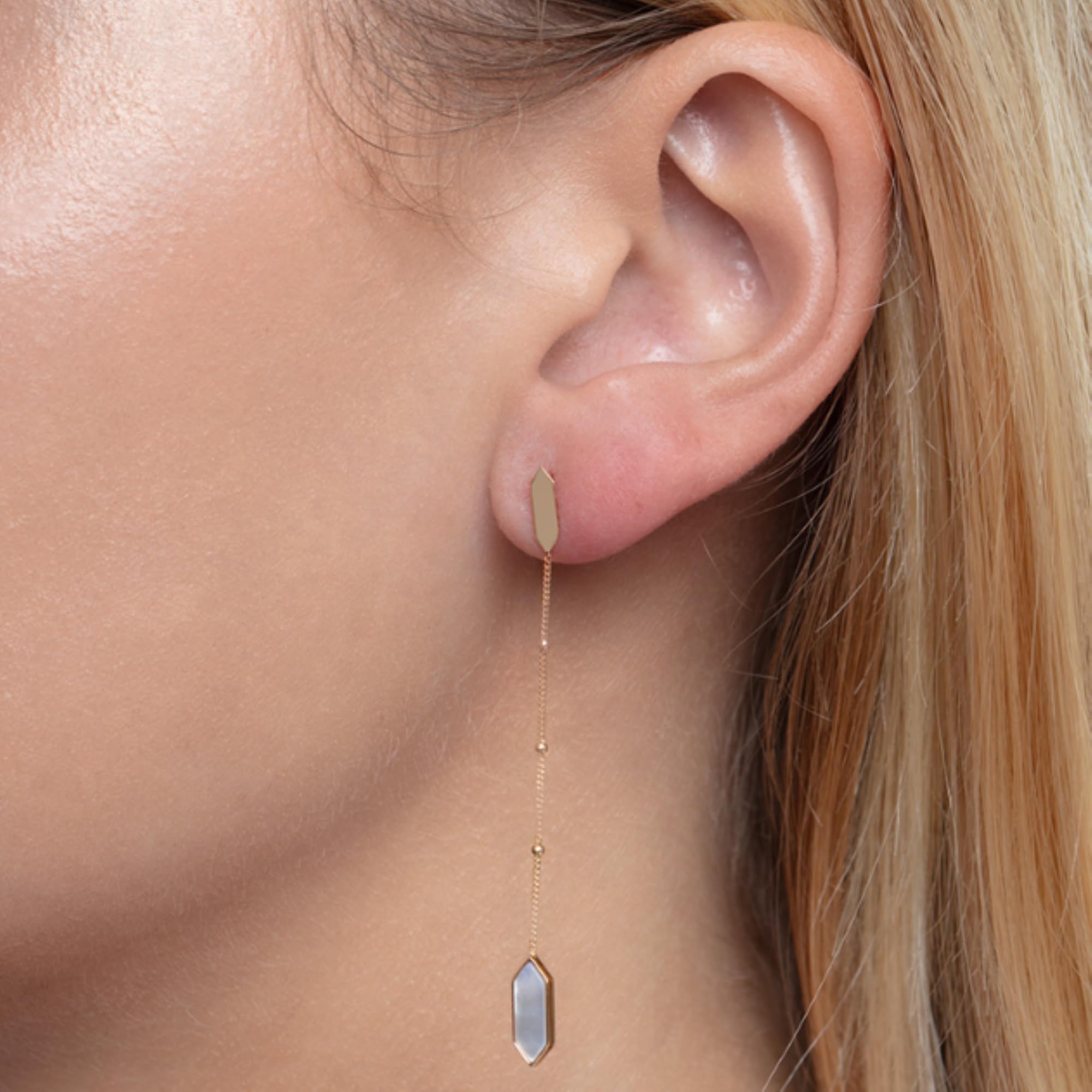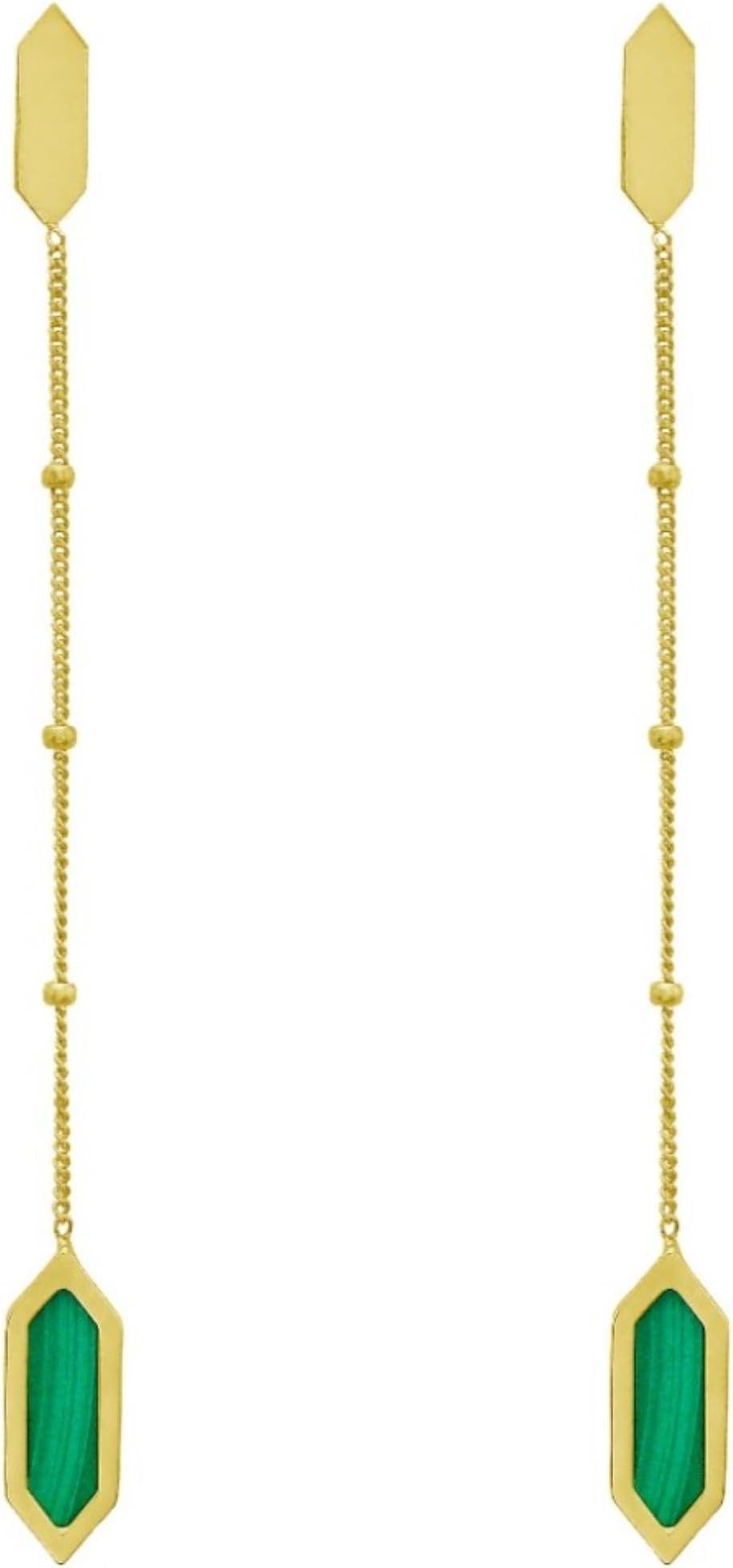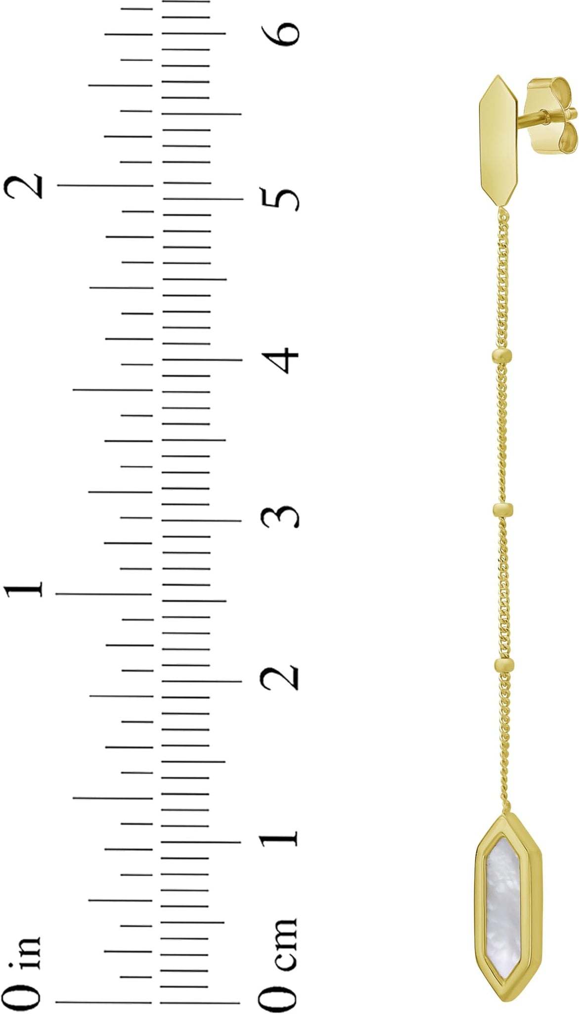 FEATURES— Designed with captivating mother of pearl, onyx, or malachite hexagon drop earrings and a secure push back clasp, they blend modern geometry with organic beauty. Each gemstone displays its own unique color and luster, creating a striking statement with every movement.