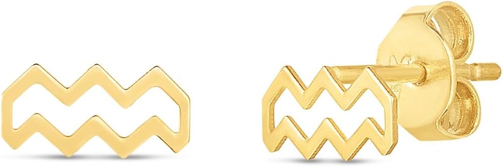 FEATURES— Elevate your look with the stunning high polish zodiac horoscope aquarius stud earrings. Expertly crafted with timeless elegance, their radiant gold shine adds a luxurious touch to any ensemble, making them the perfect accessory for any occasion.