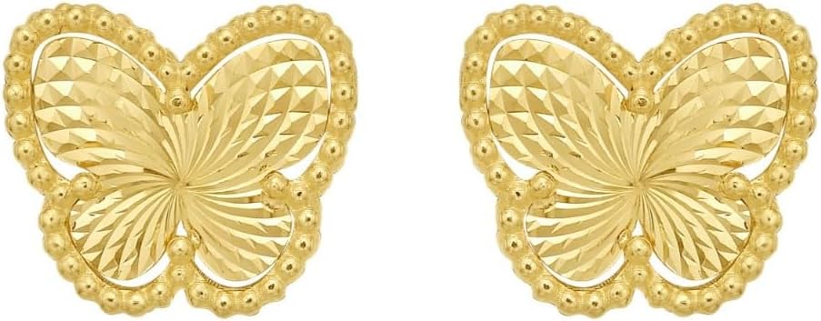 FEATURES— Designed with delicate radiating textured butterfly stud earrings, they capture the beauty of nature with a luminous, detailed finish. Each wing shimmers with fine texture, creating a soft sparkle that symbolizes transformation and grace.